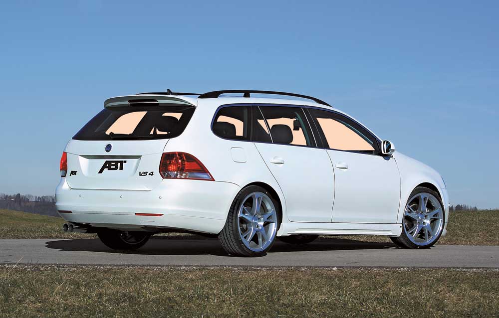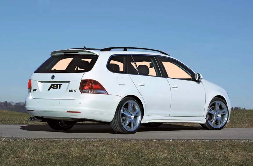 В отличие от немецких хэтчбеков Volkswagen Golf V, универсалы Variant производятся в темпераментной солнечной Мексике. Сделать автомобиль таким же «горячим» попытались при помощи аэродинамического обвеса, состоящего из стильной губы на переднем бампере и аккуратных накладок на боковые пороги. Корму машины украсили небольшим спойлером, расположенным на пятой двери. Сзади же появилось сдвоенное хромированное сопло спортивной выхлопной системы из нержавеющей стали. Оно басовито «поет» при резком нажатии на педаль акселератора. Вместо серийных колес предлагаются фирменные литые диски с футуристическим дизайном серий AR и BR диаметром от 17 до 19 дюймов. И конечно же, вся линейка моторов получила приличный «допинг» в виде дополнительных «лошадок» под капотом. Так, например, 1,4-литровый битурбированный агрегат 1.4 TFSI стал развивать внушительные 210 л. с. (+40 л. с.), а проверенный 1,9-литровый турбодизель TDI – 130 л. с. (+25 л. с.). Для ходовой части подготовили комплект новых укороченных спортивных пружин и «продвинутые» регулируемые амортизаторы Abt ISC. Покупатели также могут преобразить интерьер своих «универсальных» любимцев. Для салона предлагаются спортивные рулевые колеса, ковшеобразные передние сиденья, отделка алюминиевыми вставками и фирменные коврики на пол с логотипами Abt Sportsline.