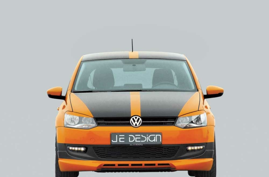Для нового автомобиля создали оригинальный аэродинамический обвес (1528 евро) из высококачественного ABS-пластика. Он состоит из новых фронтальной «губы», боковых юбок и эффектного заднего диффузора, выполненного под карбон. Не обошлось также без модных нынче светодиодных фонарей дневного света (399 евро). Дорожный просвет новинки уменьшился на 35 мм в результате установки укороченных спортивных пружин (149 евро за комплект). Если же этого вам окажется недостаточно, существует более экстремальный вариант – с регулируемыми амортизационными стойками KW (929 евро). В этом случае клиренс снижается на 65 мм. А вот оформление интерьера скорее люксовое, что слегка контрастирует с агрессивным внешним видом. Элегантная кожаная отделка салона (1599 евро) прекрасно сочетается с новым спортивным рулевым колесом (399 евро), кожаным кожухом селектора коробки передач и новой ручкой рычага стояночного тормоза (179 евро). За 79 евро спинки кресел можно украсить вышивкой логотипов JE Design в цвет кузова автомобиля. В настоящее время JE Design также активно работает над улучшением технических параметров дизельных и бензиновых моторов нового Volkswagen Polo.