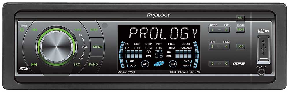 | Prology MCA-1070UНесмотря на первое место в нашем обзоре по уровню доступности, эта модель обладает далеко не самым маленьким набором функций. В дополнение к USB за откидной (и съемной) панелью вместе с дископриемником можно обнаружить слот для SD-карточек. Цвет подсветки кнопок меняется с красного на зеленый – под цвета интерьера или под настроение владельца. 1 050 грн. |