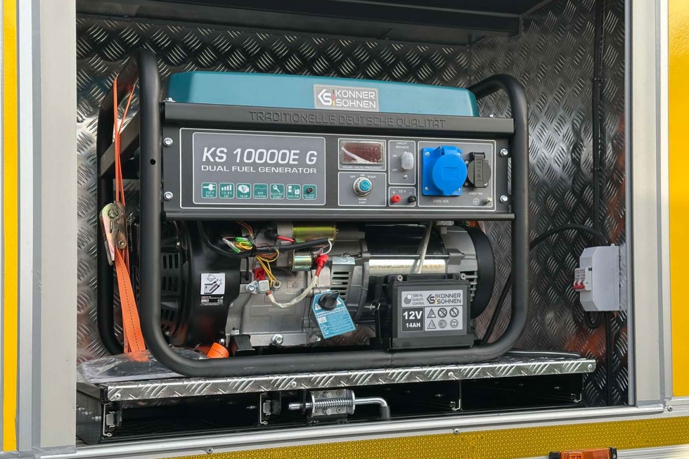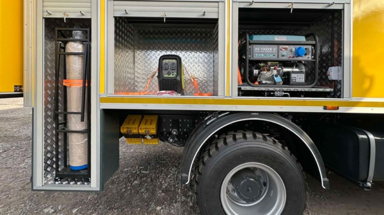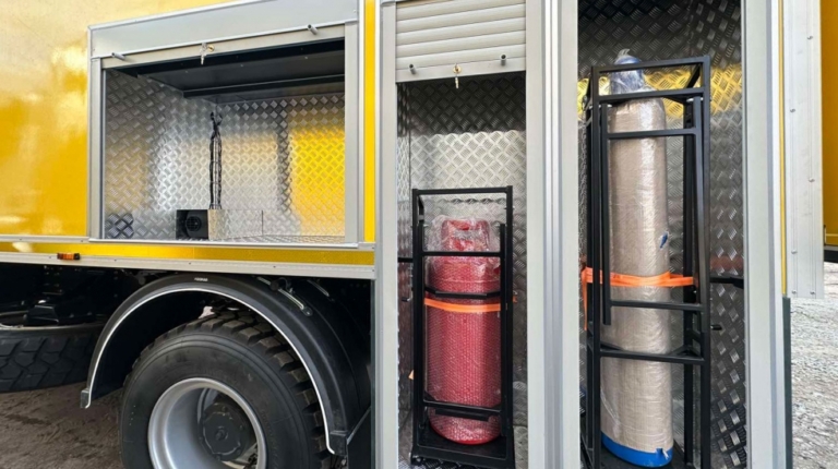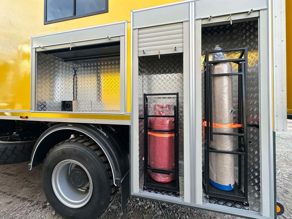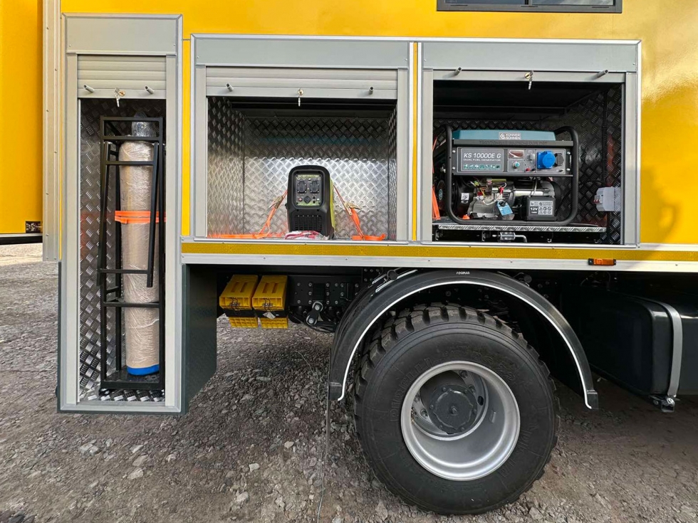 Другий відсік – технологічний, з двостулковими дверцятами в кормі. Тут знаходяться шафи під балони зварювального посту та відсік для дизельного генератора – із зовнішнім доступом. Усередині також є станок та стелаж завширшки 500 мм з трьома полицями. Обидва відсіки обладнані економічними LED-плафонами.