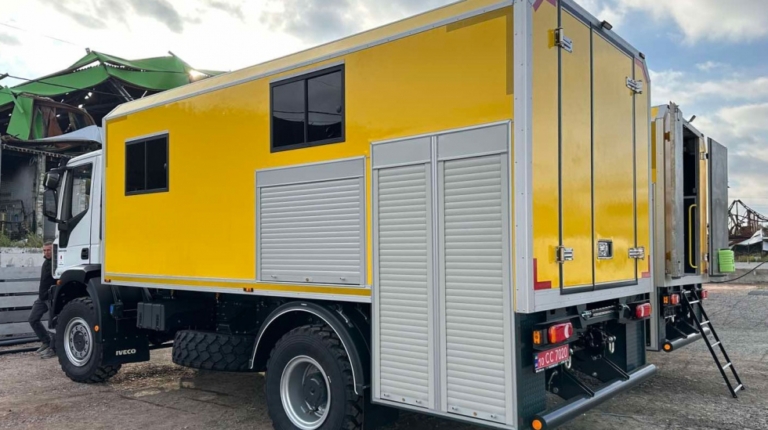 На позашляховому шасі IVECO Eurocargo ML110-250 (4х4) встановлений кузов-фургон. В його основі лежить сталевий несучий каркас, обшитий зовні оцинкованим листом завтовшки 0,7 мм, з полімерним покриттям. Як утеплювач використовується екструдований 40-мм пінополістирол. Внутрішня оббивка виготовлена з алюкомпозитних панелей завтовшки 3-4 мм.
