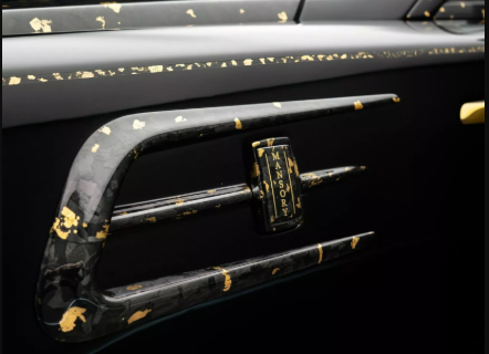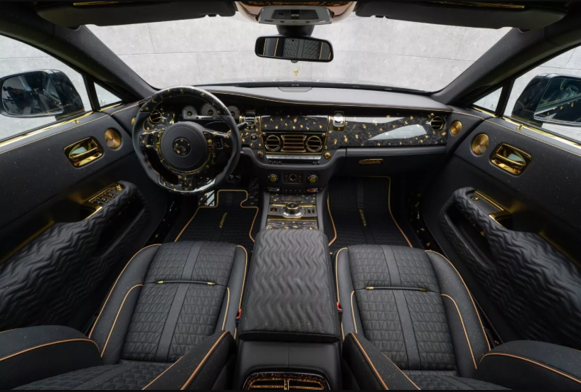 Примітно, що капот, обвіс і задній спойлер Rolls-Royce виготовлені з вуглецевого волокна. Їздить автомобіль на величезних золотих кованих колісних дисках. Золота тематика продовжується і в його салоні. Тут 24-каратне золото прикрашає приладову панель, рульове колесо, педалі і центральну консоль. Ще інкрустовані золотом решітки динаміків і дверні ручки.