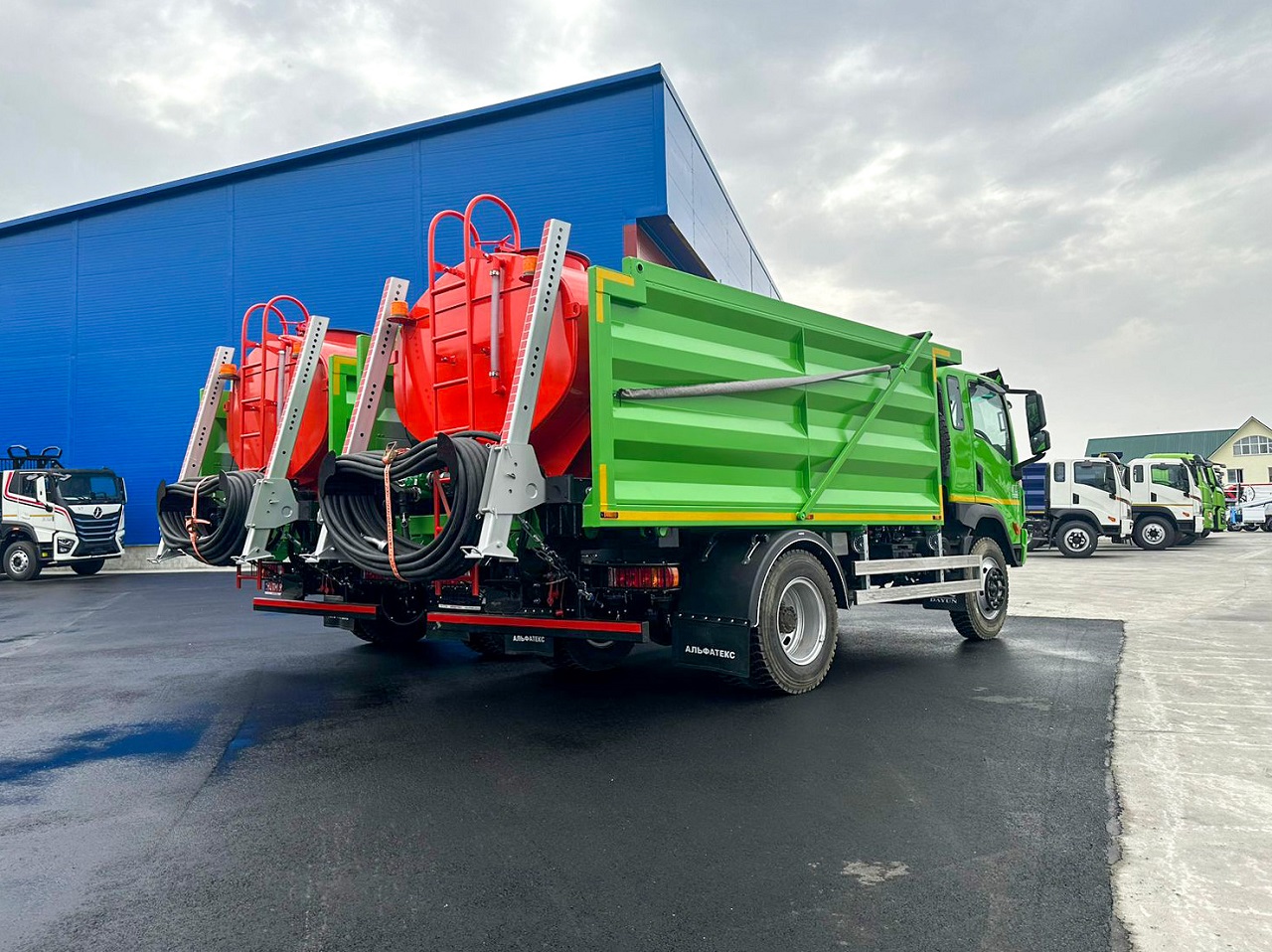 В оснащення входять 10-кубовий самоскидний кузов заднього розвантаження, цистерна на 5000 л води та поливомийне обладнання. Ширина обробки при митті складає 10 м, а при поливанні – 20 м. Є також 50-метровий садовий шланг.
