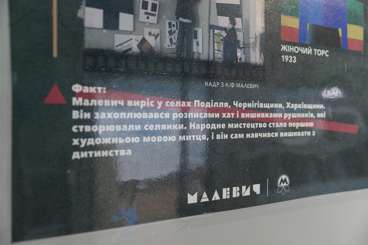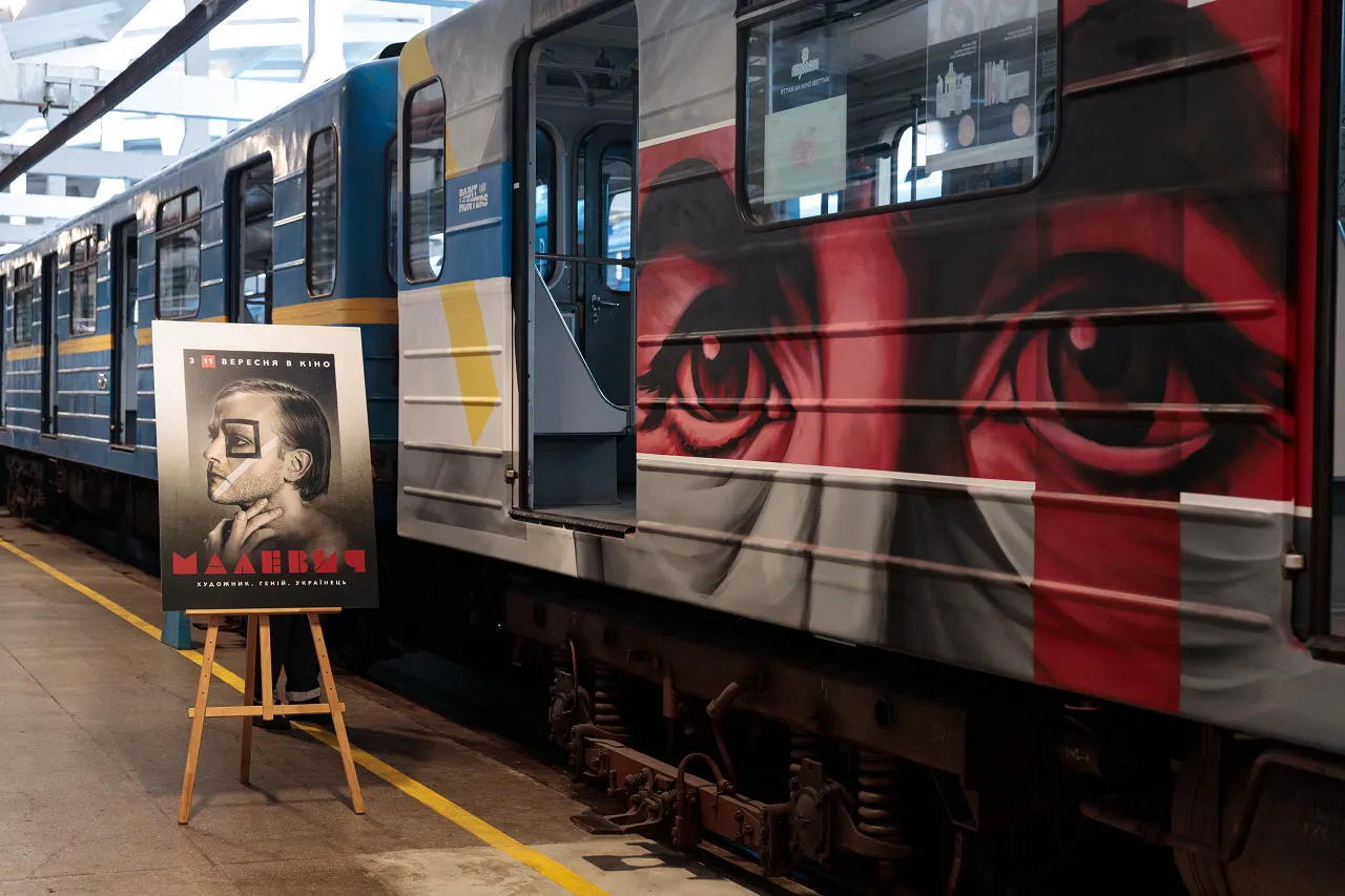 З 27 серпня на «синій» лінії київського метрополітену курсуватиме арт-поїзд, присвячений українському художнику-авангардисту Казимиру Малевичу. Проєкт створено у співпраці київського метрополітену, FILM.UA та команди фільму «Малевич», прем’єра якого відбудеться 11 вересня у всіх кінотеатрах країни.