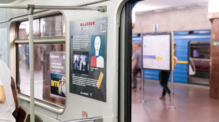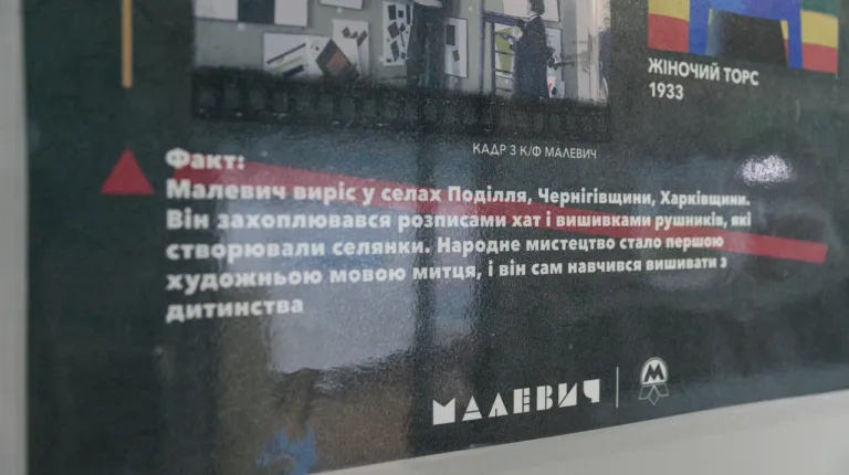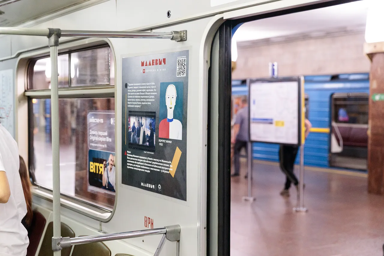 Команда художників Paint Hunters зі звичайного вагона зробила мінігалерею картин Малевича. Зовні вагон оздоблений яскравими геометричними фігурами у стилі митця та впізнаваним чорним квадратом. А всередині – інформаційними постерами, які знайомлять пасажирів із життям і творчістю митця, зокрема з його київським періодом.