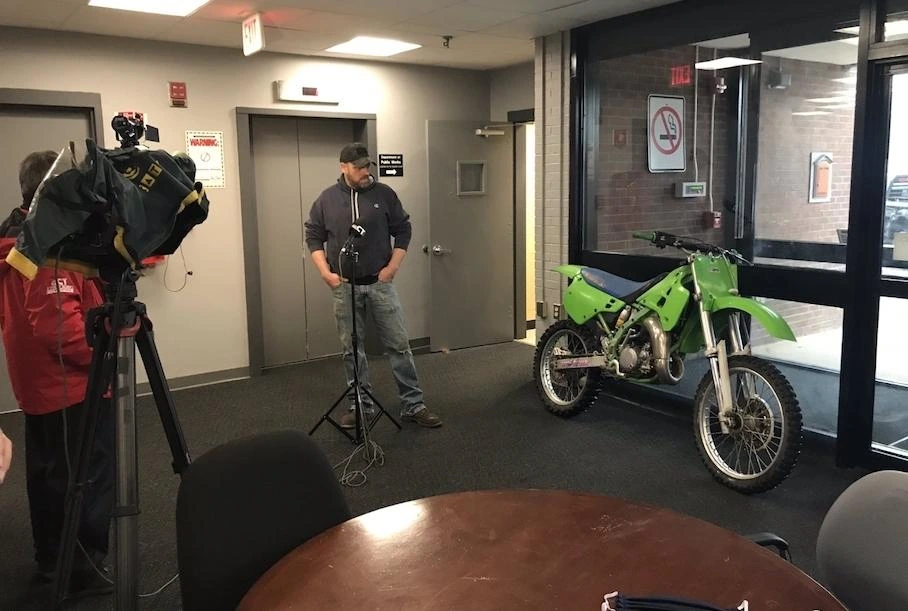 На момент викрадення вживаного Kawasaki KX 1990 року випуску його власнику Джонатану Гагінські було 17 років. Вже практично через місяць після купівлі байка, катаючись на шкільному дворі, він зламав руку і потрапив до лікарні. Його Kawasaki KX, на купівлю якого Джонатан збирав кілька місяців, залишився на місці аварії. Залишений без нагляду перегоновий байк просто не міг не привернути увагу викрадача. Вийшовши з лікарні, хлопець заявив про викрадення в місцеве відділення поліції, але байк так і не знайшли.