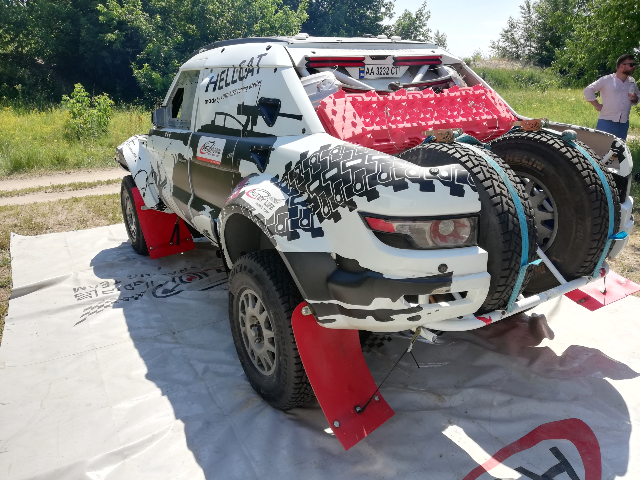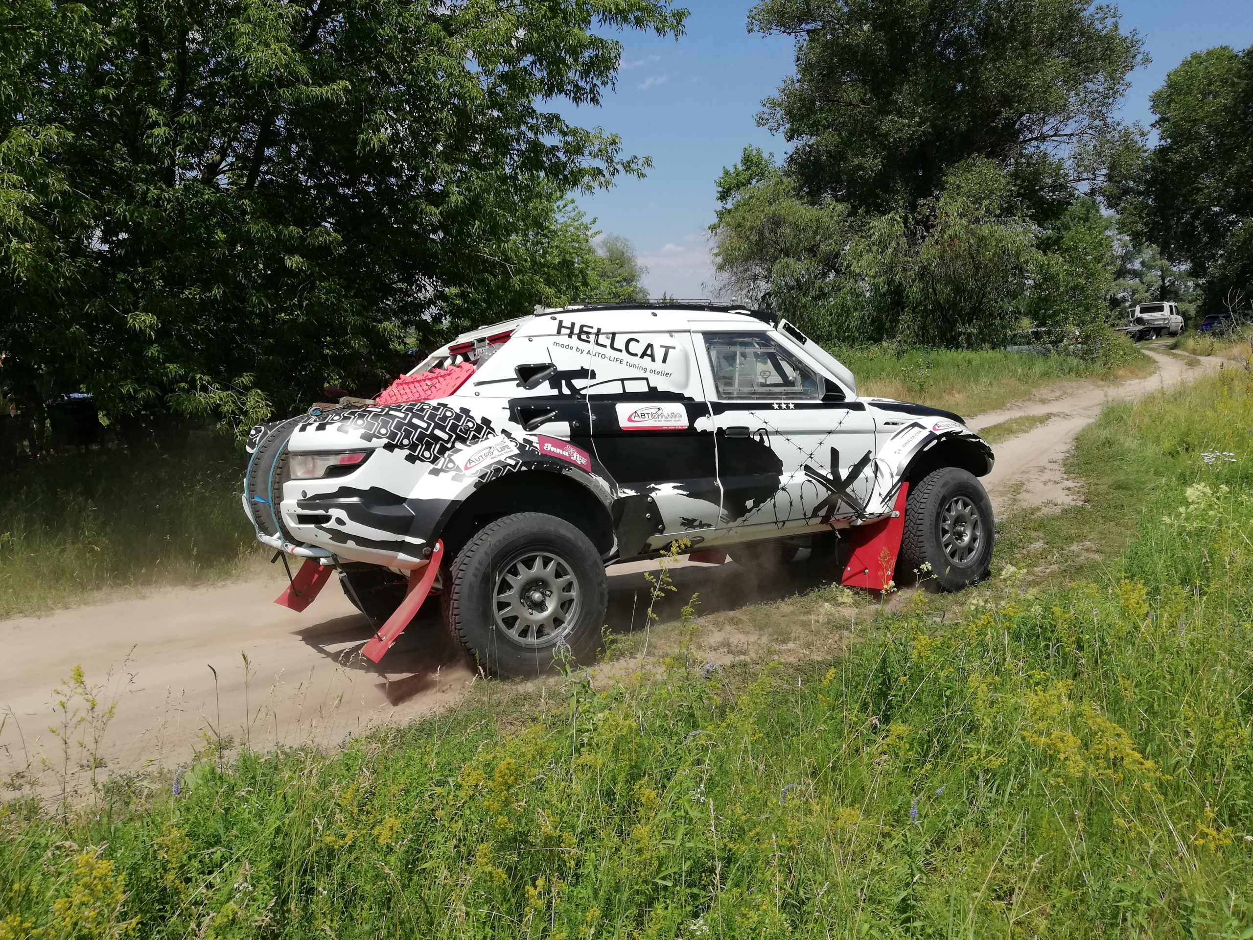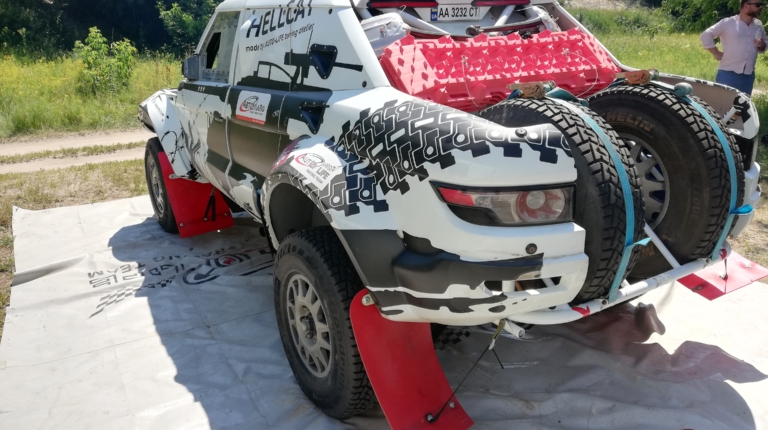 Hellcat – с англ. “ведьма”, но назван так автомобиль в честь американской противотанковой установки M18. Присмотритесь внимательнее к раскраске на бортах! Это автомобиль, разработанный и собранный нуля в Украине компанией Autolife, и подготовленный по наивысшей категории гоночных автомобилей – классу Т-1. Он полностью отвечает требованиям регламента спортивных дисциплин FIA Cross Country Rally и FIA Cross Country Bajas, Dakar, Africa Race и Silk Way Rally. По сути, этот прототип является прямым конкурентом боевым машинам известных в мировом автоспорте команд X-Raid и Toyota Overdrive. В 2018 и 2019 годах Hellcat уже участвовал во многих известных соревнованиях, таких как Italian Baja, Turkmenistan Rally и уже упомянутом Silk Way Rally (ралли “Шелковый путь”), но вот до Дакара еще не добиралась.