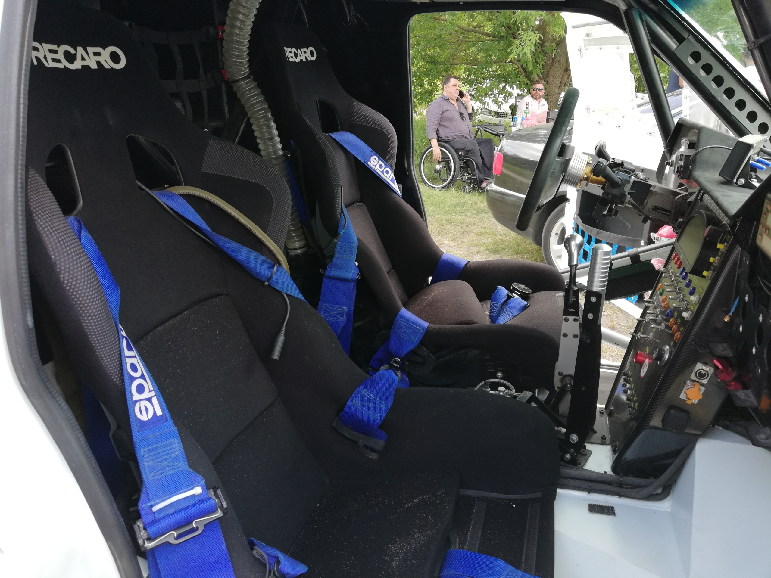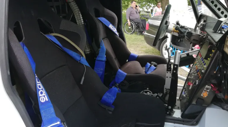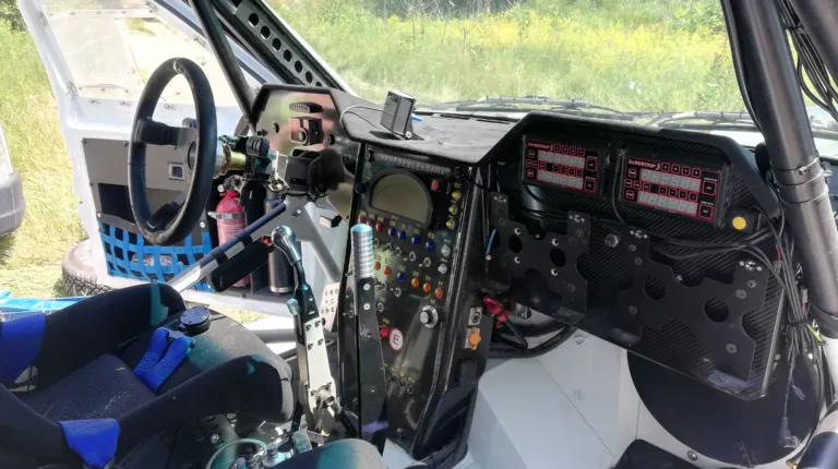 Вообще, каково это, быть пилотом или штурманом такого боевого автомобиля? “Давай попробуешь?” – весело подмигивают мне ребята из Autolife и Вадим. Да, не за рулем, но и на месте штурмана AutoLife Hellcat LR не менее круто! Между прочим, многие платят немалые деньги (выступая одним из спонсоров команды), чтобы занять это место в гонках, и при этом не просто катаются, но выполняют все обязанности штурмана. Так что одеваю шлем и устраиваюсь в гоночном ковше, после чего меня крепко пристегивают пятиточечными ремнями.