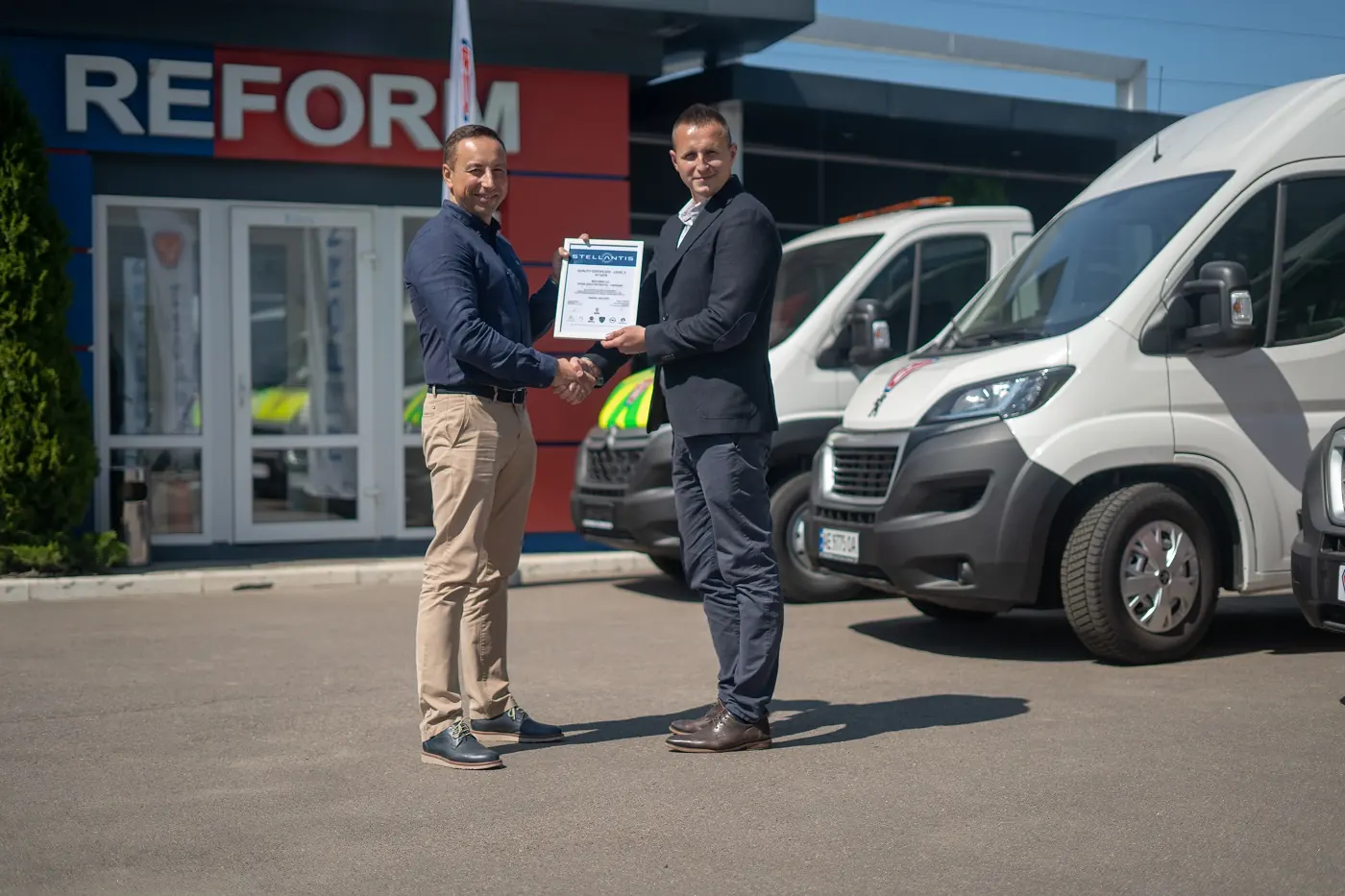 Наявність даного сертифіката говорить про те, що якість спец-автомобілів від «РЕФОРМ» повністю відповідає всім вимогам Концерну Stellantis: клієнт може бути повністю впевнений як у високій надійності і витривалості основного шасі автомобілів PEUGEOT, CITROЁN, OPEL, так і в створеній спец-надбудові від «РЕФОРМ».