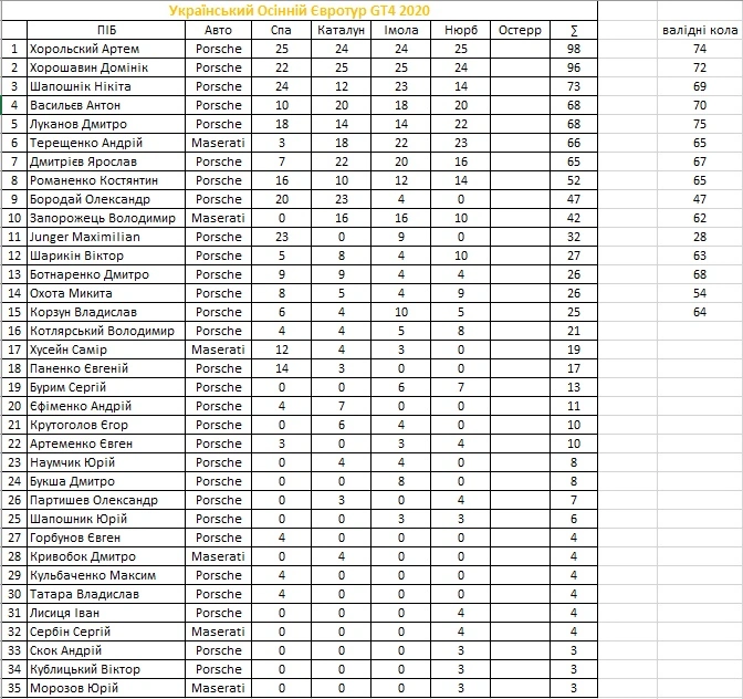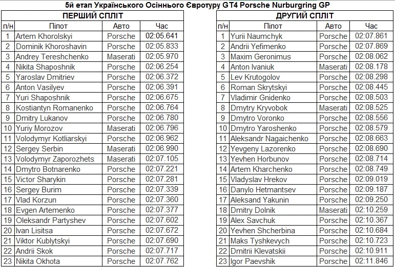 У рамках Українського осіннього Євротуру GT4, у минулу суботу відбувся ще один етап віртуальних перегонів – Гран-прі Нюрбургрингу. Після мега-кваліфікації у якій лише 4-ри пілоти відзначилися часом меншим за 2 хв 6 секунд, стало зрозуміло, що основними претендентами на перемогу є Артем Хорольський, Домінік Хорошавін, Нікіта Шапошнік та Андрій Терещенко. З цих чотирьох гонщиків, лише Андрій Терещенко вибрав для змагання автомобіль Maserati, який починаючи з Гран-прі Імоли, показує гарний темп.