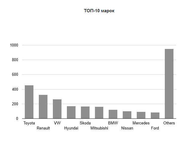 Самой востребованной маркой месяца стала Toyota. Машинам японского бренда отдали предпочтение 456 украинских автомобилиста. Лидером в личном зачете вновь стал кроссовер Renault Duster. На его счету 168 регистраций. Несмотря на увеличение спроса на автомобильном рынке страны, за шесть месяцев текущего года украинский автопарк пополнило 17 800 новых легковых машин, что в 2,7 раза меньше, чем за аналогичный период прошлого года.
