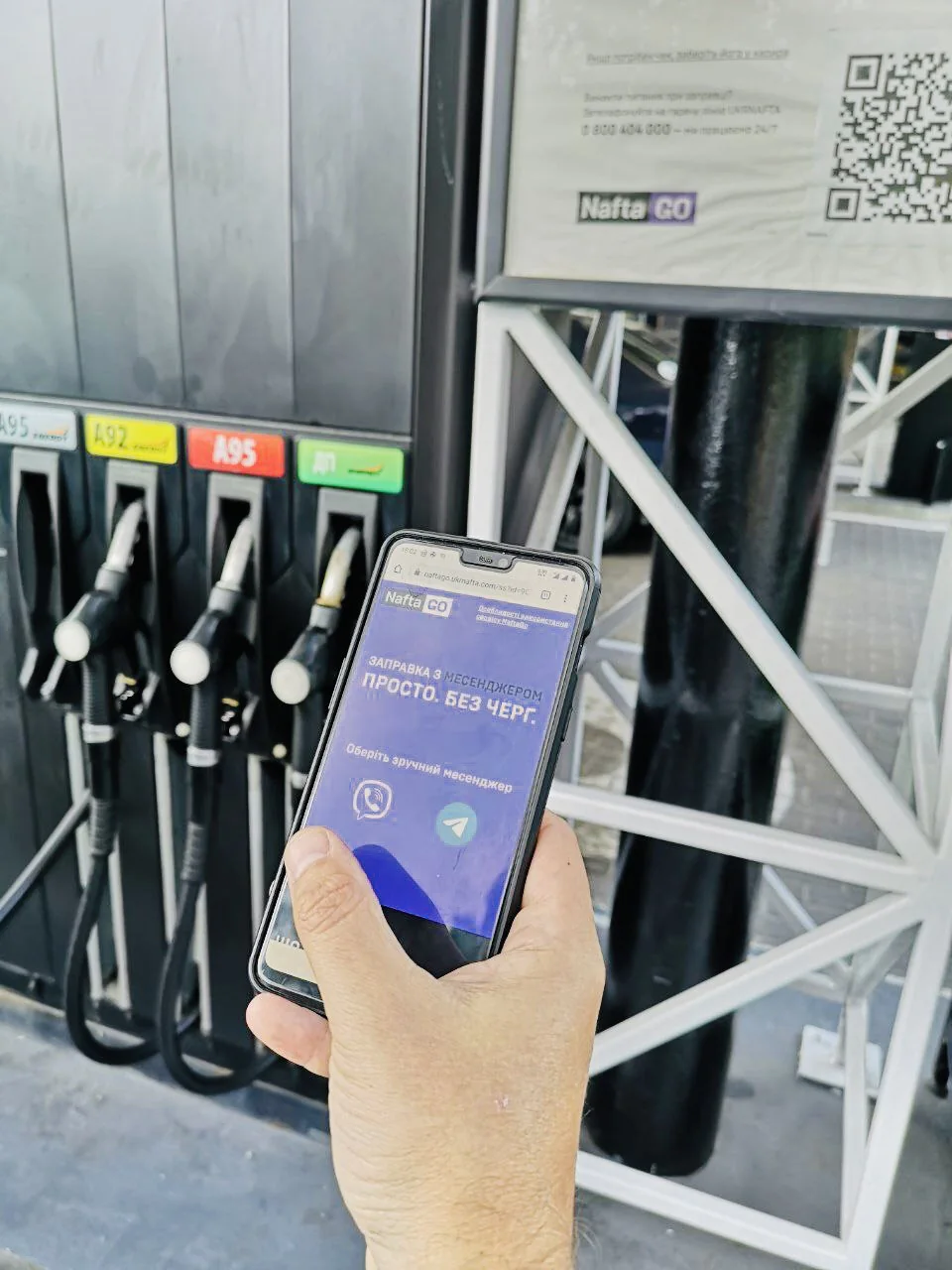 - Бензин нараховуватиметься в сервісі NaftaGO. Це звичайний чат-бот, який є і в телеграмі, і у вайбері. Активується миттєво, і дає можливість заправитись без очікування на касі.