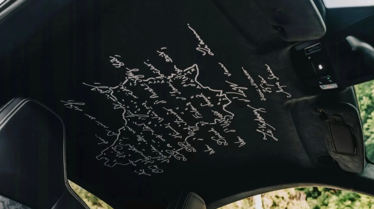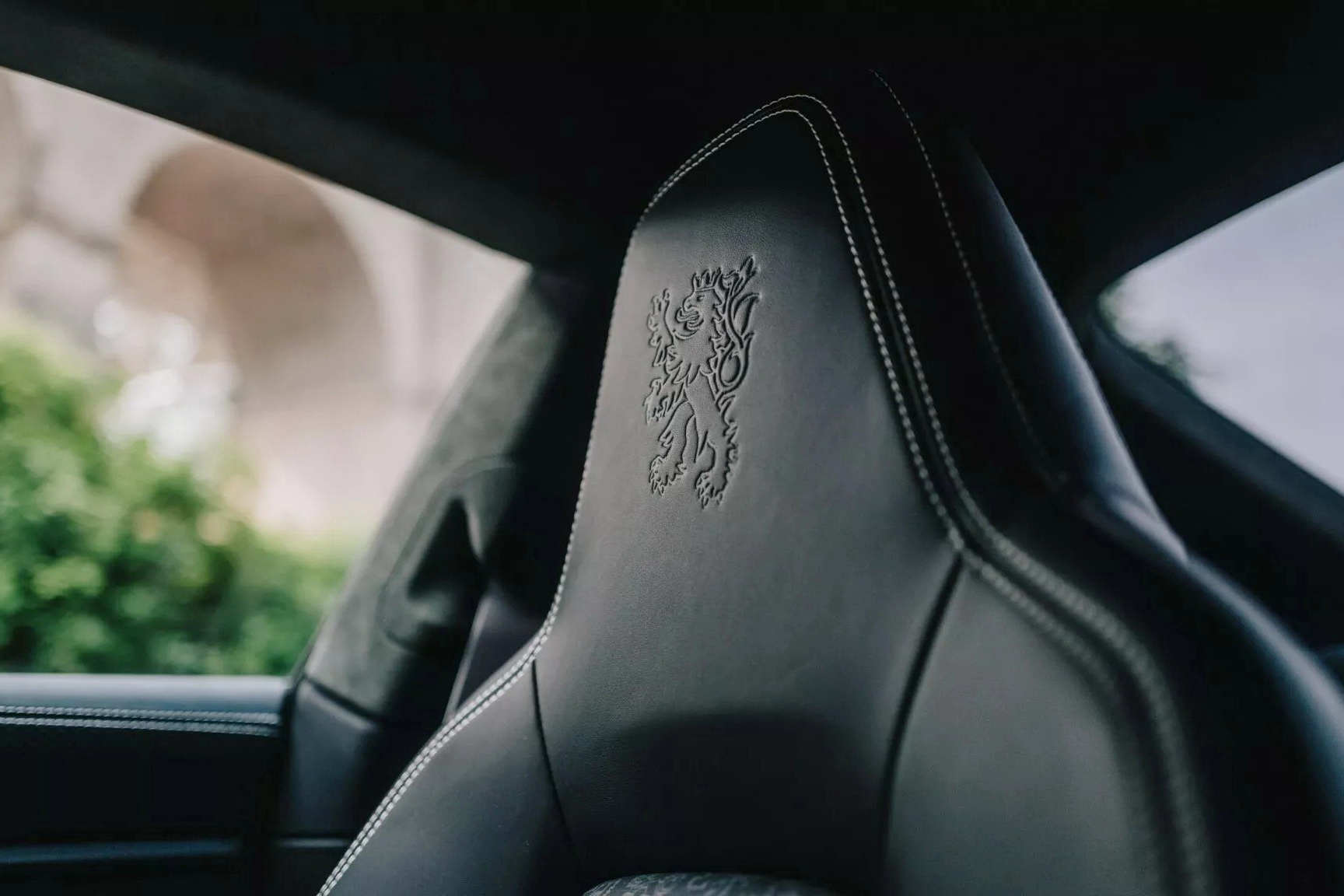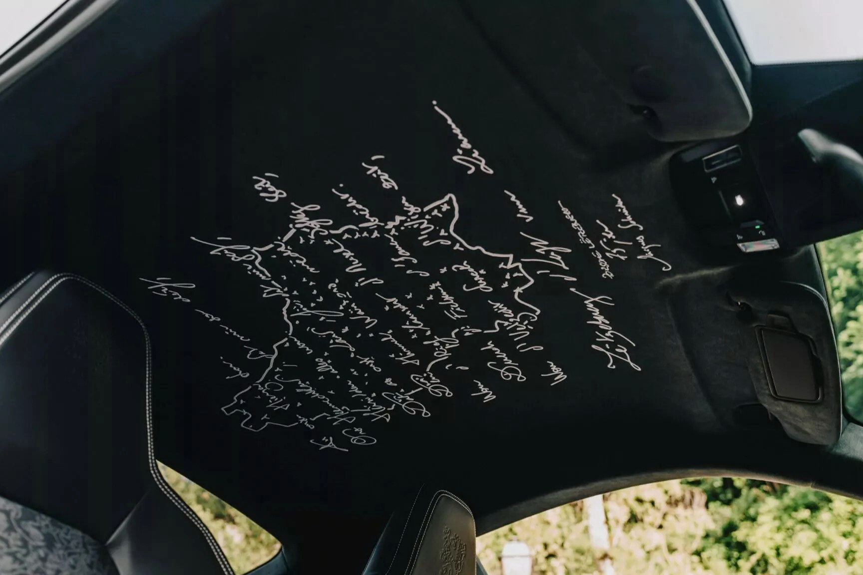 Не менш ефектно виглядає інтер’єр цього GT3 Touring. На стелі вишита карта Люксембургу з початковими рядками національного гімну. На підголівниках зображені леви, а на спинках сидінь білі написи «Vive». Пороги прикрасили накладками з чорного матового алюмінію з написом «Porsche Lëtzebuerg».