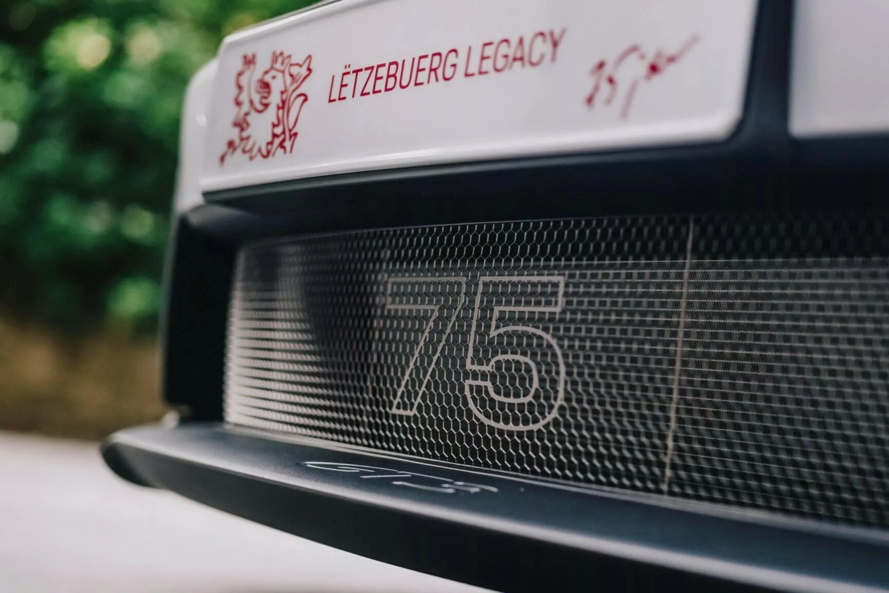 На створення цього артшедевра пішло 700 годин. Червоний лев був обраний як символ «міцності, сили та національної ідентичності Люксембургу». Автомобіль отримав комплект спеціальних 20- та 21-дюймових дисків у кольорі Graphite Grey, на яких вигравіюваний за допомогою лазера напис «Vive Vive Vive». Попереду автомобіля можна побачити число «75» на ґратах радіатора, матові чорні значки на центральних стійках і матовий чорний напис «911 GT3 Touring» на кришці багажника.