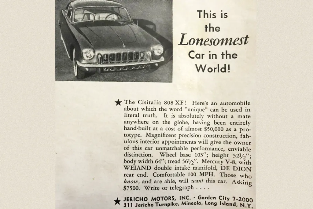 На американському онлайн-аукціоні Bring-a-Trailer було продано унікальний автомобіль. 1953 Cisitalia 808XF Coupe Prototype, який створювався на замовлення Ford, але так і не став серійним.