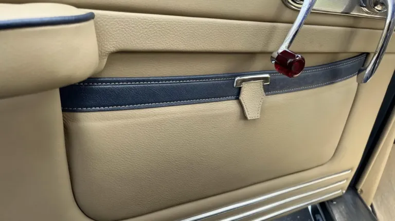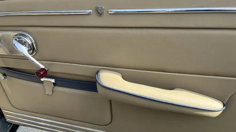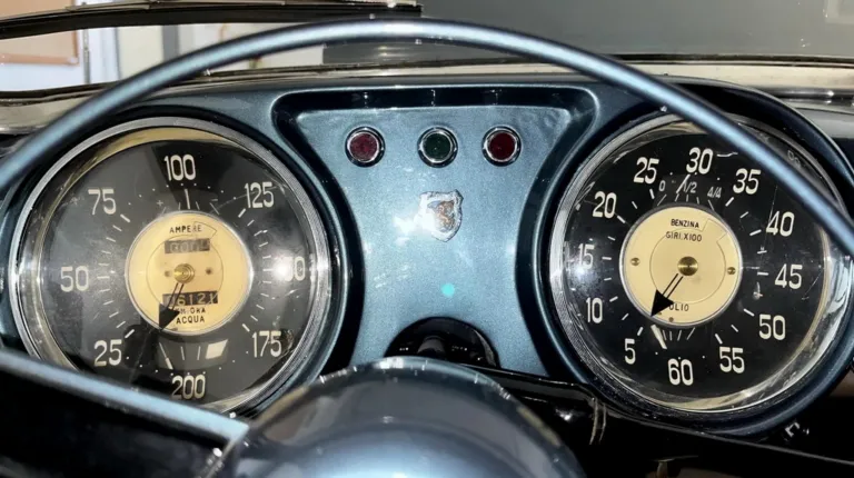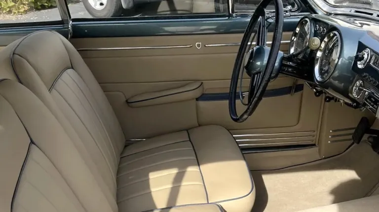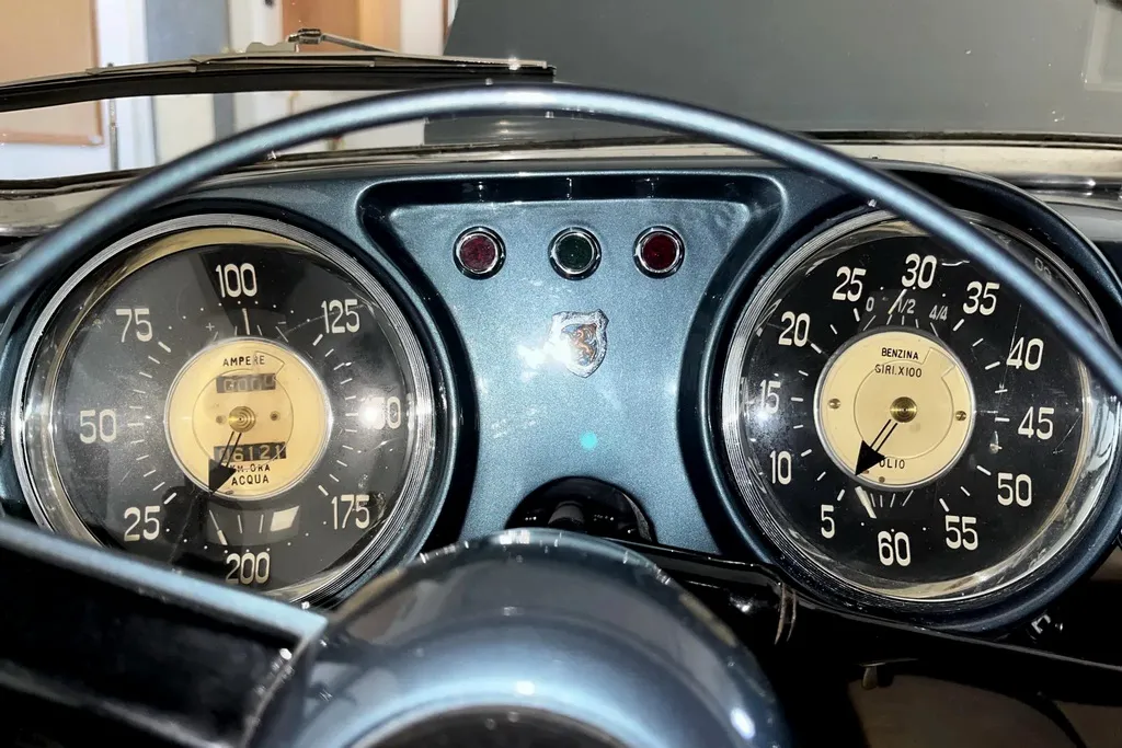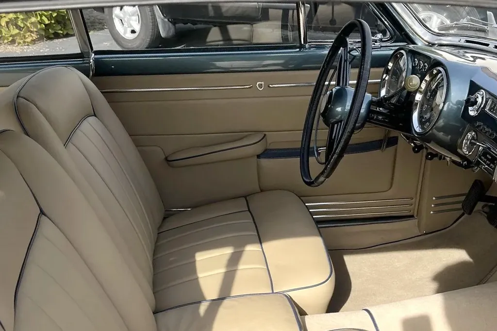 Інтер’єр відновлений на зразок оригінального дизайну Cistalia. Він оброблений бежевою шкірою із синім кантом на ківшеподібних сидіннях та дверних панелях. Додаткові функції включають килимки в тон, дверні накладки кольору кузова і приладову панель кольору кузова, в яку інтегровані попільничка і ящик рукавичок з дверцятами бежевого кольору, сонцезахисні козирки, дверні кишені, емблеми Cistalia на кожних дверях, обігрівач Magic Air та кнопковий радіоприймач від Ford.