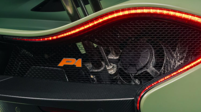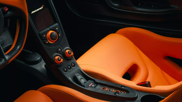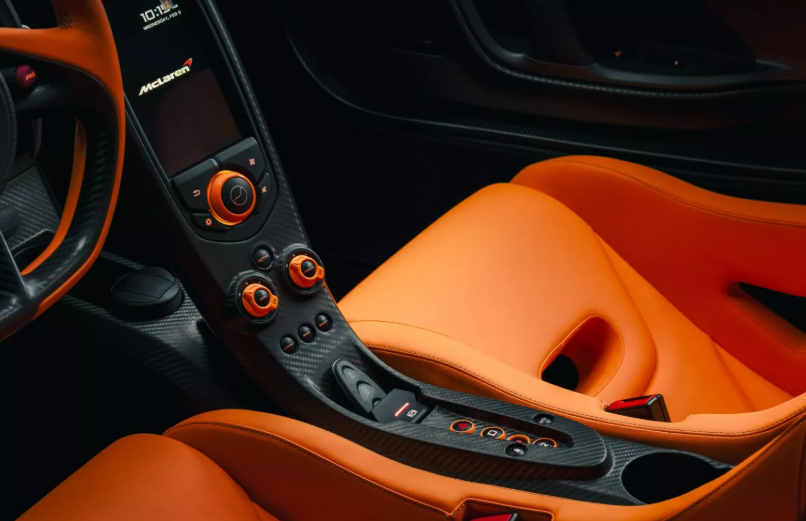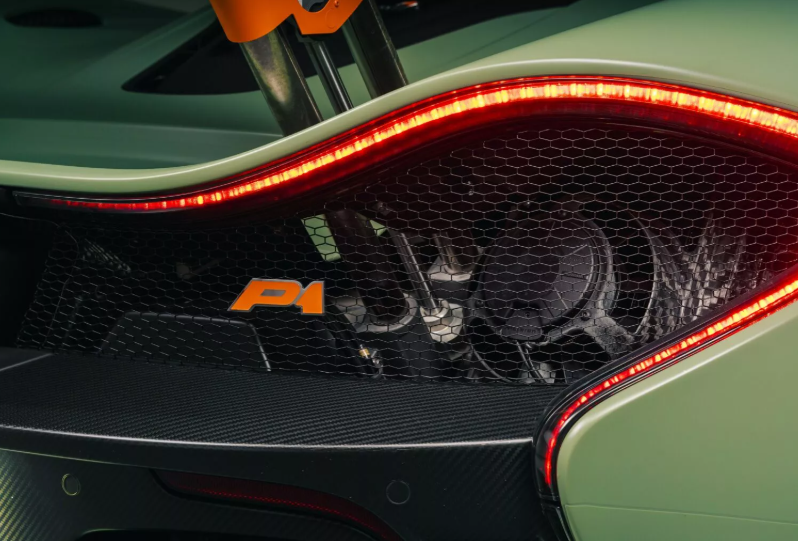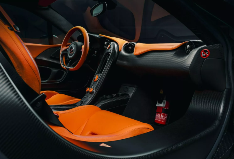 Основний відтінок Satin Camo Green поєднується з яскраво-помаранчевими акцентами. В ньому виконані емблеми, гальмівні супорти, ступичні ковпаки та верхня частина гідравлічного привода заднього спойлера. Ці акценти кольору McLaren Orange продовжуються в салоні гіперкара. Сидіння, рульове колесо, дверні карти, передня панель оздоблені шкірою цього відтінку. Ще є помаранчеві перемикачі. В якості акцентів виступають вставки з відкритого вуглецевого волокна.