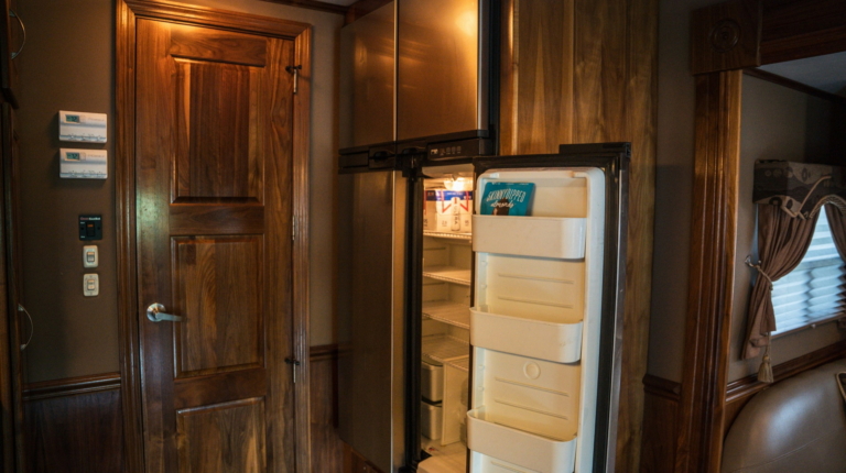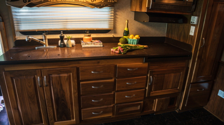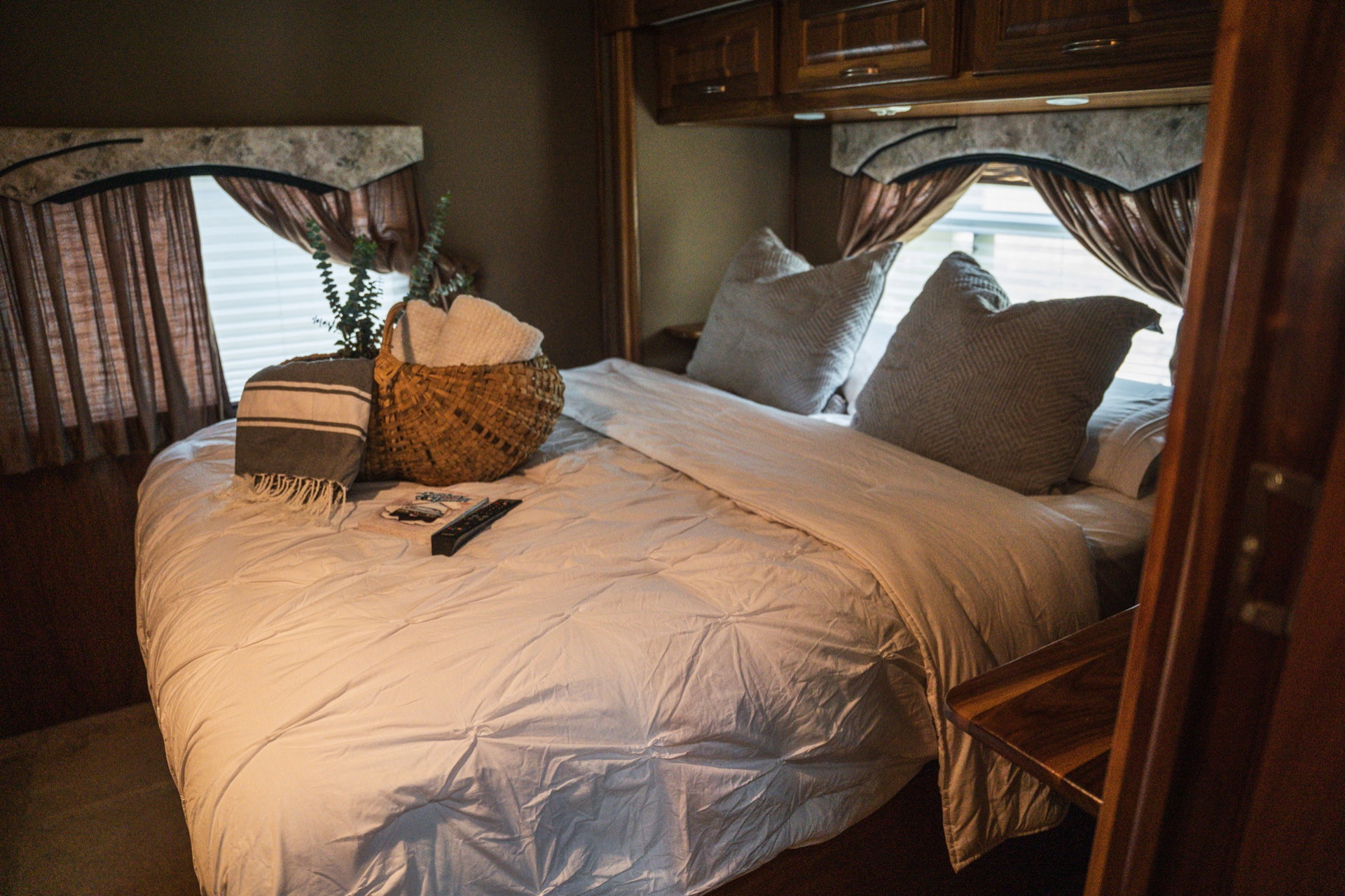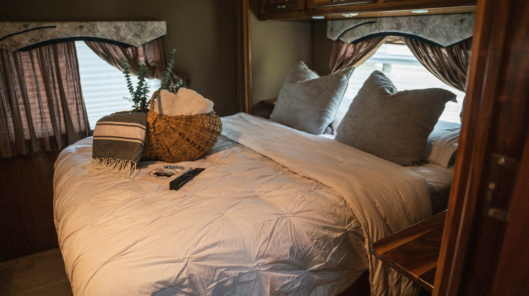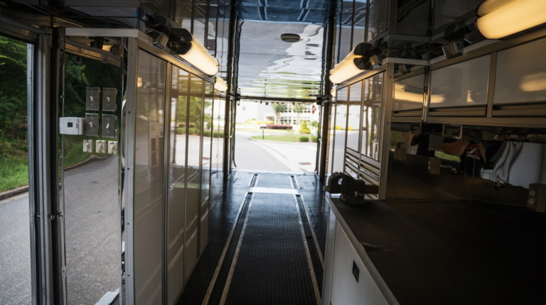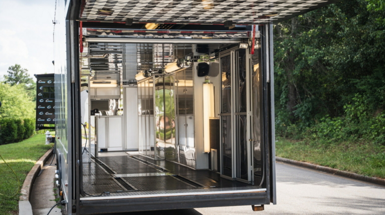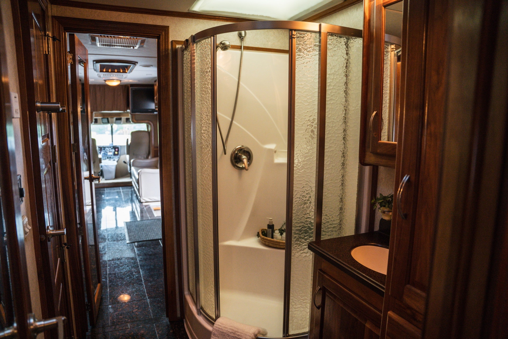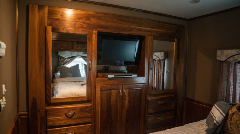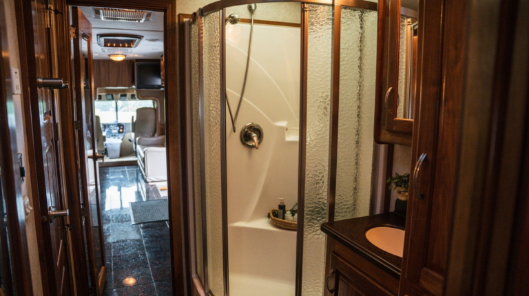 У розпорядженні мешканців повнорозмірна ванна кімната з душовою кабіною, раковиною і окремим туалетом. Далі розташована спальна зона з великим ліжком, ще одним телевізором і безліччю ніш для зберігання особистих речей. Подивитися улюблений фільм або телешоу можна і на свіжому повітрі, сидячи під величезних навісом з електроприводом. У “вуличний” набір входять холодильник і гриль.