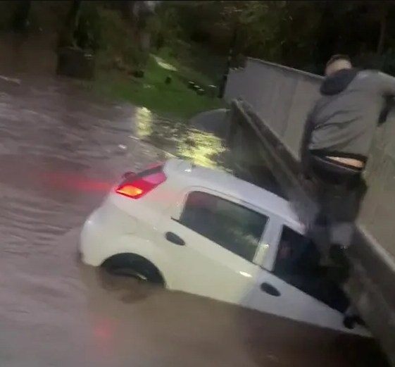 До такого потоку потрапила місцева мешканка, яка опинилася на вулиці під час стихії. У салоні авто була ще її трирічна дочка. Потік води підхопив компактний Fiat Punto та почав нести з неймовірною силою. Від безсилля жінка просто волала про допомогу. Її почув британець Ліам Стіч, який у цей момент проходив повз.