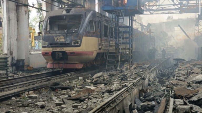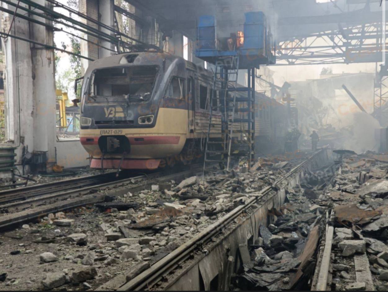 Неподалік вокзалу вщент згорів легковий автомобіль. Він опинився в епіцентрі ракетного удару, і на нього впали уламки. Декілька легковиків опинилися під завалами і також отримали серйозні пошкодження.