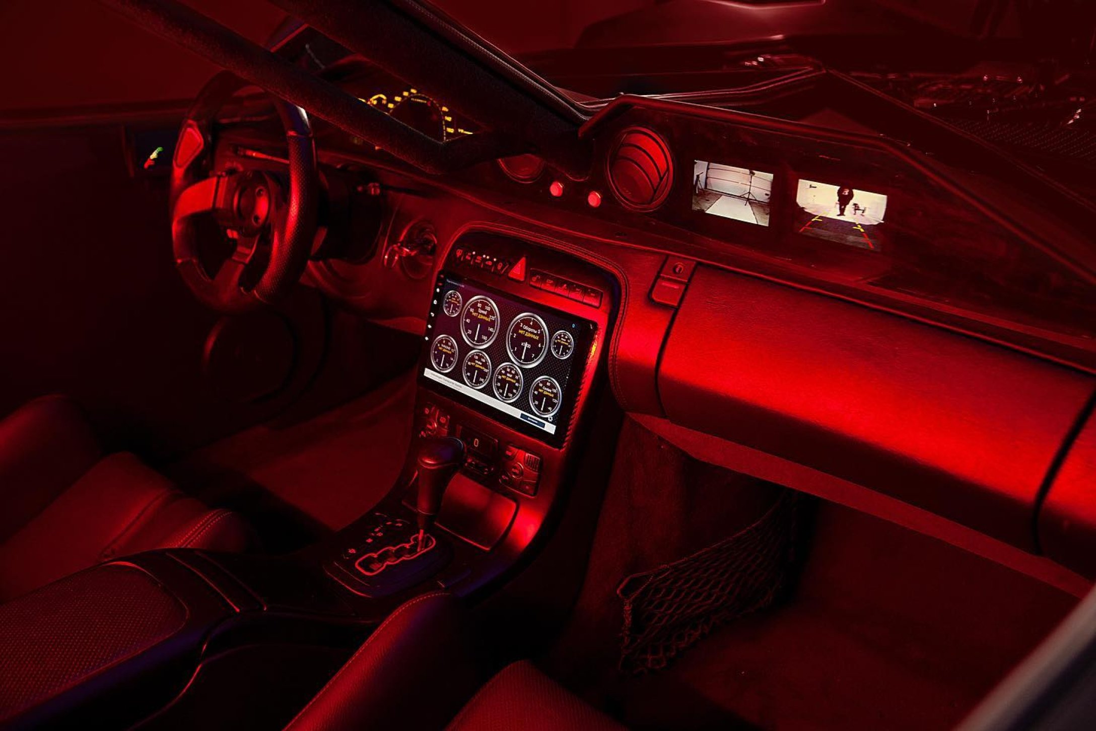 Доступ до салону відкривають двері, що піднімаються вгору. У салоні встановлені спортивні сидіння, сенсорний дисплей та два окремі екрани для передньої та задньої камер.