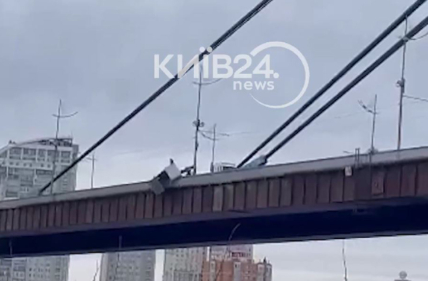 У Києві з Північного мосту до Дніпра скинули залізний гараж