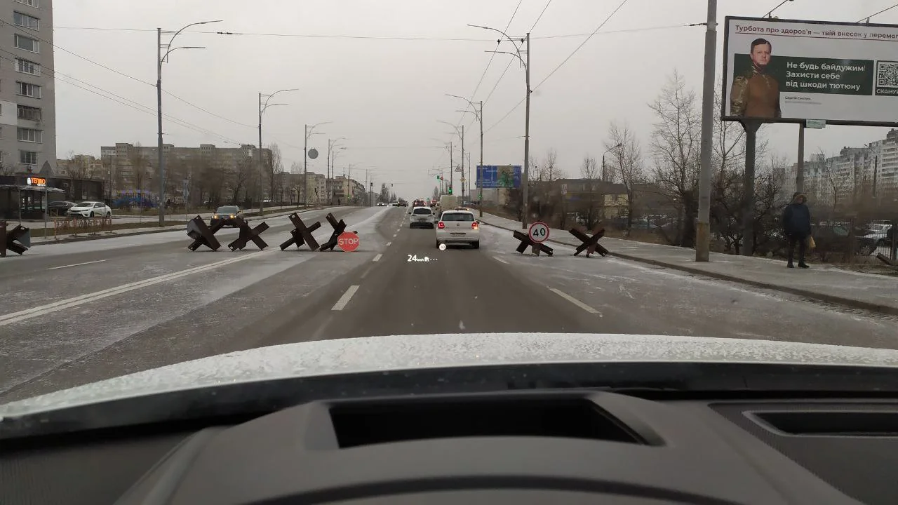 У зв'язку з річницею повного масштабного військового вторгнення Російської Федерації до України 24 лютого 2022 року у Києві запровадили додаткові заходи безпеки. Зокрема, на деяких дорогах встановили бетонні блоки та обмежували ширину проїжджої частини протитанковими їжаками.