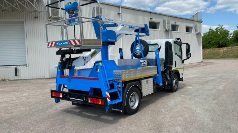 Робоча висота підйому становить 13,7 м, а максимальний виліт – 7,1 м. Кошик вантажопідйомністю 250 кг може повертатися на 90 град ліворуч або праворуч, що підвищує зручність роботи. Кошик, що дуже важливо, електроізольований до 1000 В.