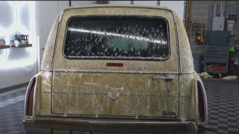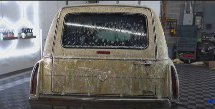 За цей час кузов машини покрився товстим шаром пилу, бруду та плісняви. Також на ньому з’явилися осередки іржі. Фахівці дітей-лінг-студії WD Detailing взялися провести перше миття катафалка. Спочатку його очистили від бруду, потім провели два цикли миття та відполірували. Фінальним штрихом стало фарбування сколів і нанесення керамічного покриття.