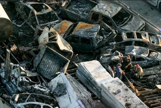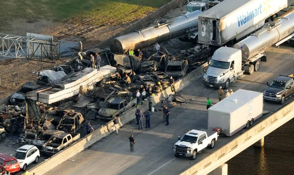 Як повідомила поліція штату, автомобілі хаотично розташувалися на північній та південній смугах дороги. На одній із ділянок шосе спалахнула пожежа, яка охопила цистерну з небезпечною рідиною та кілька десятків машин. Було залучено пожежників, які швидко погасили полум’я.