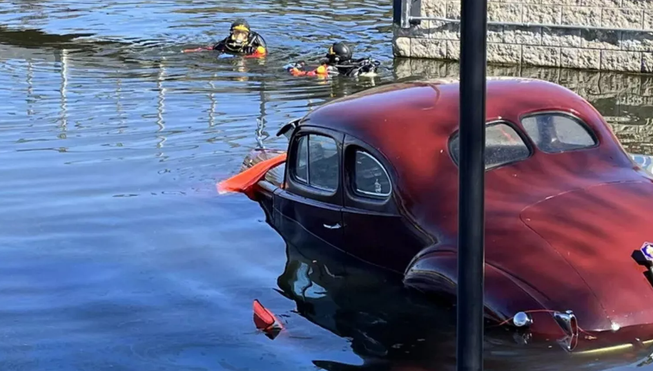 Вінтажне купе швидко пішло під воду. Зверху залишився лише дах. Витягти автомобіль із води самостійно чоловіков не мав можливості, тому викликав рятувальників. Тим знадобилося дві години, щоб Packard знову опинився на суші.