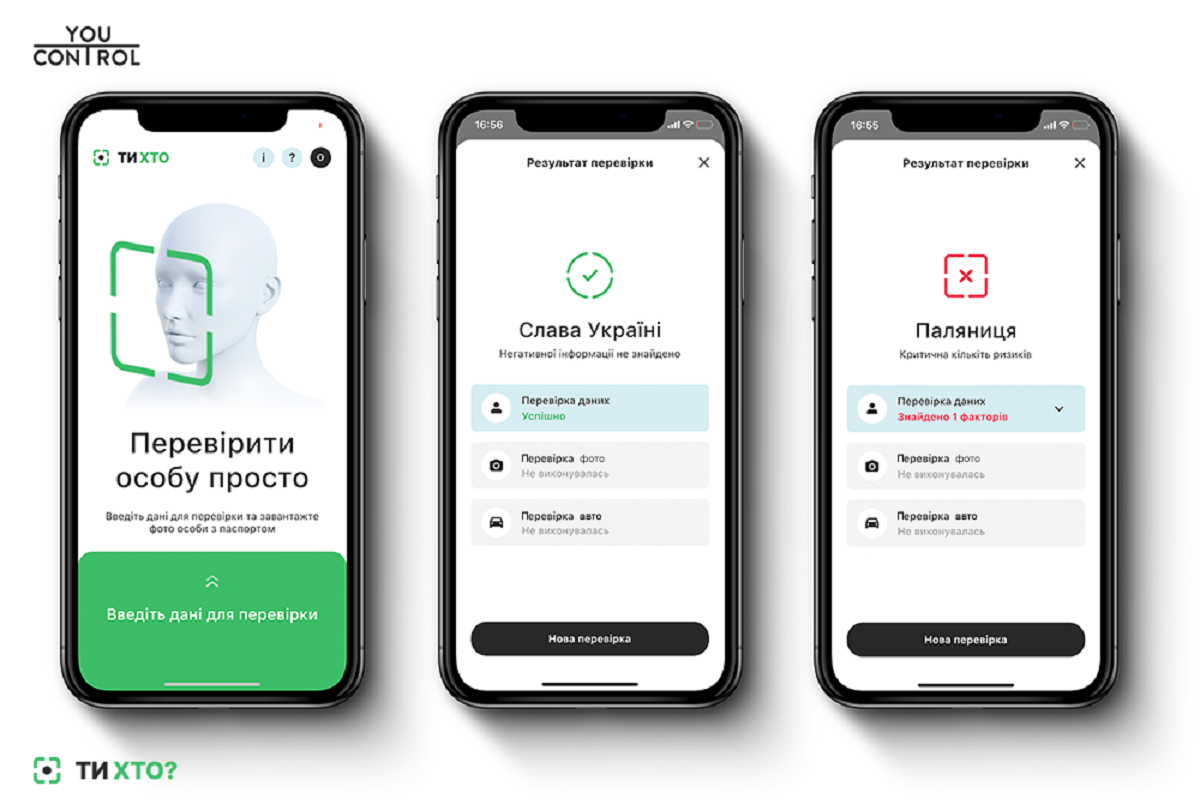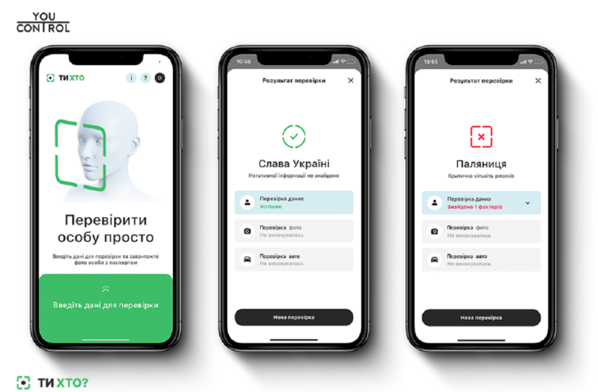 ІТ-компанія YouControl спільно з розробником технологій штучного інтелекту Artellence та за підтримки СБУ розробили додаток під назвою “ТиХто”. Він дає змогу швидко ідентифікувати підозрілих осіб і виявляти диверсантів і колаборантів на блокпостах, на вулицях під час комендантської години, на входах в укриття і в будь-яких інших місцях. Додаток безкоштовний і доступний для всім охочих, зокрема бійців тероборони, ЗСУ, Національної гвардії, співробітників СБУ, МВС, державних органів і волонтерів.