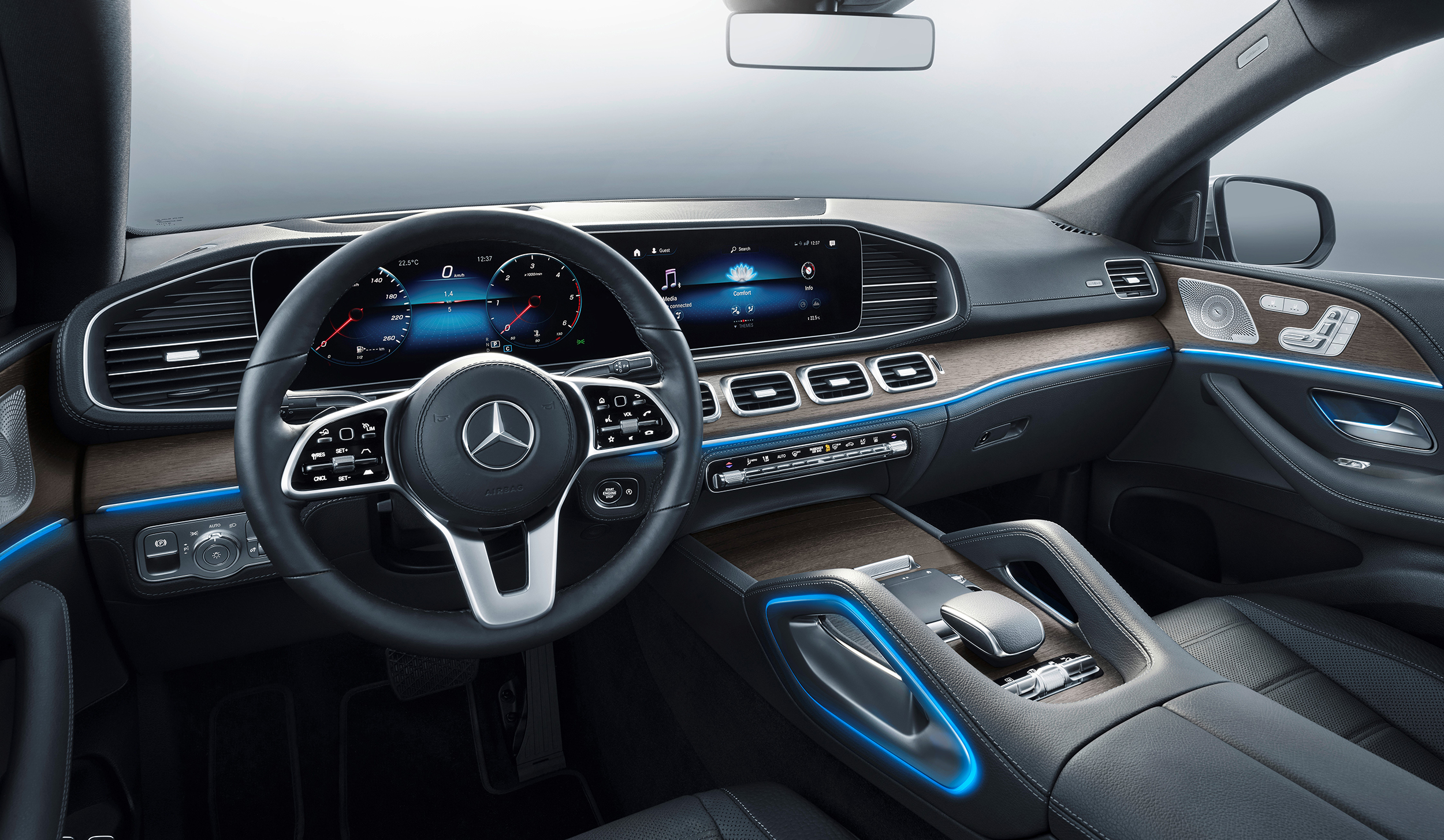 Мультимедійна система mbux новітнього покоління наділена штучним інтелектом і має найширші можливості. Керувати нею можна як за допомогою сенсорного екрана, так і тачпада на центральній консолі, а ще за допомогою крихітних “тачів” на спицях керма. Доступне й голосове керування. Відмінною особливістю інтер’єру є широка декоративна планка на торпедо з чотирма дефлекторами у центрі. Традиційно Mercedes-Benz пропонує безліч варіантів оздоблення та їхніх поєднань.