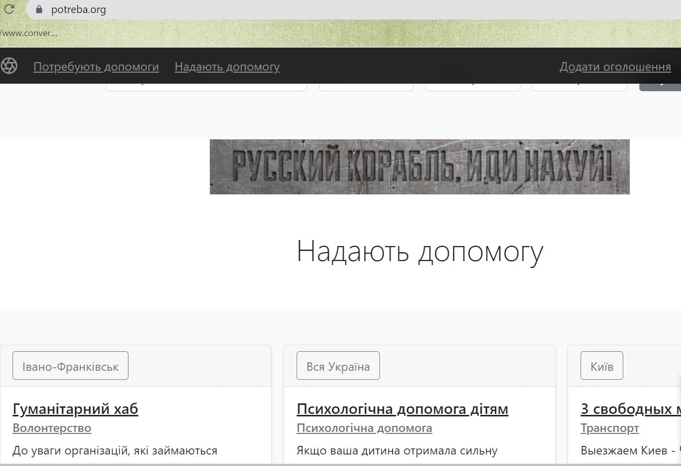 В Україні з'явився безкоштовний сервіс, на якому зібрано оголошення про допомогу людям в умовах війни — Potreba. Тут можна знайти допомогу в таких сферах, як житло, гуманітарна, медична, психологічна допомога, догляд за тваринами і транспорт.
