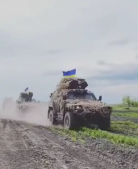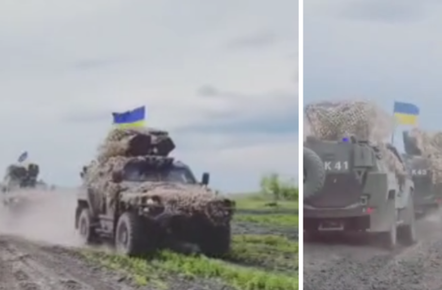 Закамуфльовані бронемашини зі встановленими прапорами України рухаються колоною ґрунтовою дорогою країни, піднімаючи клуби пилу. У кадр потрапило три машини Cobra II. Скільки саме отримали наші захисники таких броньовиків, невідомо.