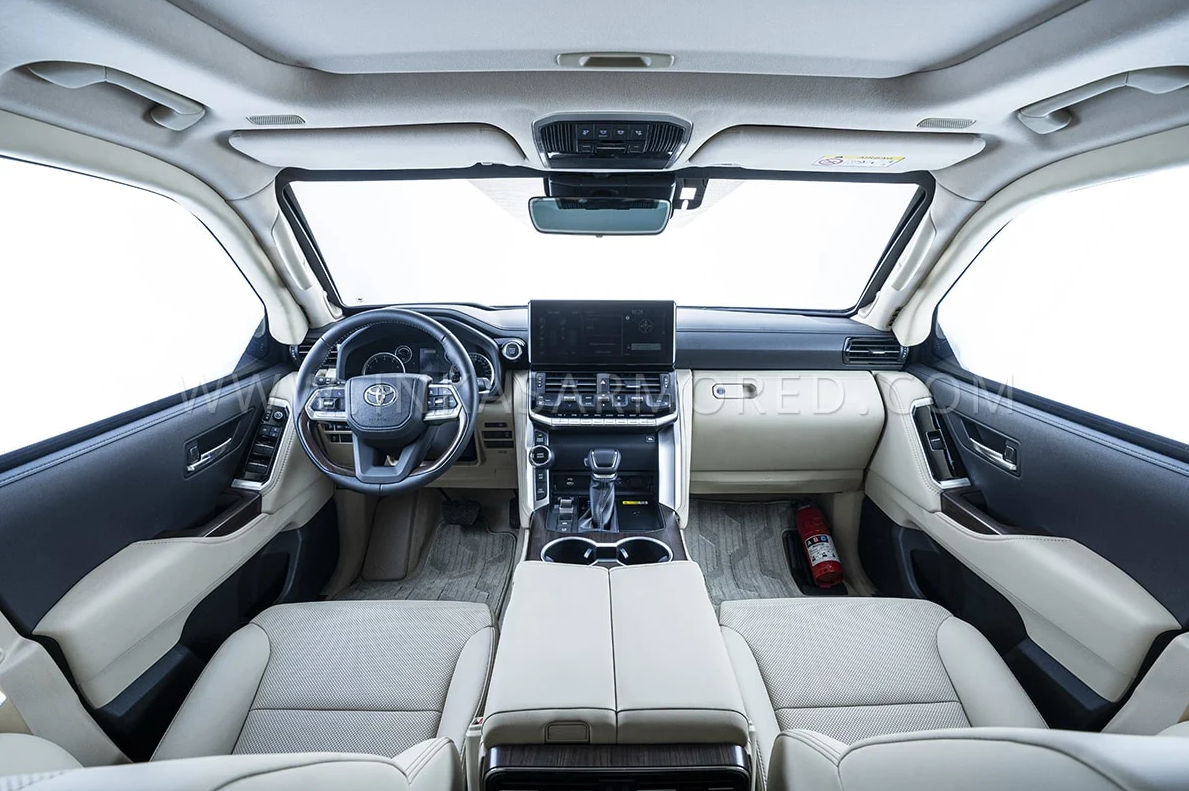 За додаткову плату компанія пропонує аварійне освітлення, сирену, системи пожежогасіння та внутрішнього зв’язку. В результаті новий Тойота Ленд Круізер 300 здатний витримувати обстріл зі штурмових гвинтівок калібру 7,62 та вибухи ручних гранат.