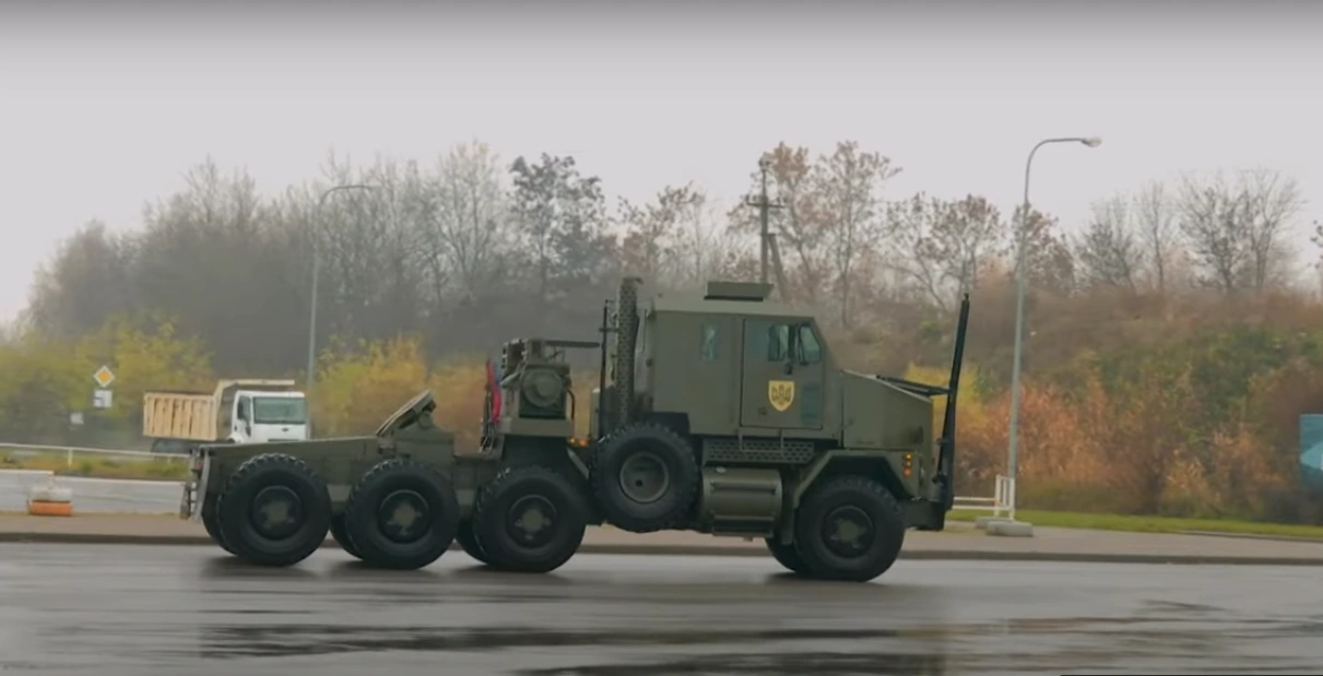 Цей американський всюдихідний восьмиколісний гігант був придбаний у Великій Британії. Він здатний транспортувати танки, БТРи, самохідні артилерійські установки та іншу важку броньовану техніку. Oshkosh M1070 стане незамінним помічником для наших артилеристів.