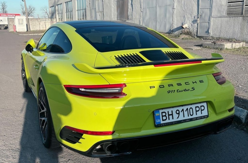 Porsche 911 Turbo S Exclusive, пофарбований у яскраво-салатовий колір, помітили на вулицях Одеси. Це купе оцінюють у 300 000 євро. Така вартість робить його найдорожчим представником цієї моделі, який коли-небудь був ввезений в Україну.