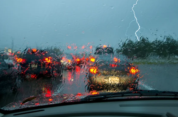 - якщо дощ такої сили, що ви втрачаєте на увазі транспорт, який їде попереду, зупиніться на узбіччі і обов’язково увімкніть аварійну сигналізацію.
