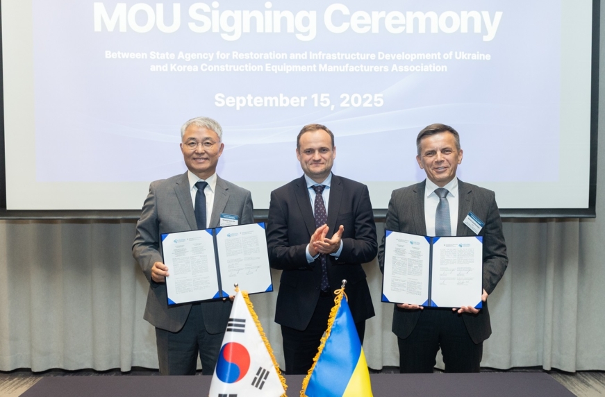 У Сеулі підписано Меморандум про співпрацю між Державним агентством відновлення та розвитку інфраструктури України та Асоціацією виробників будівельної техніки Республіки Корея (KOCEMA). Документ передбачає створення в Україні спеціалізованого навчального центру для підготовки операторів екскаваторів, кранів, бульдозерів та іншої важкої дорожньо-будівельної техніки.