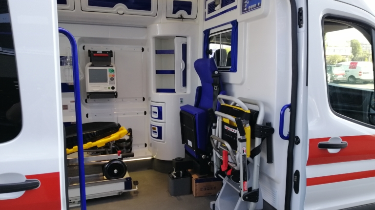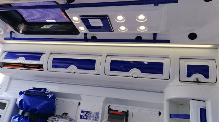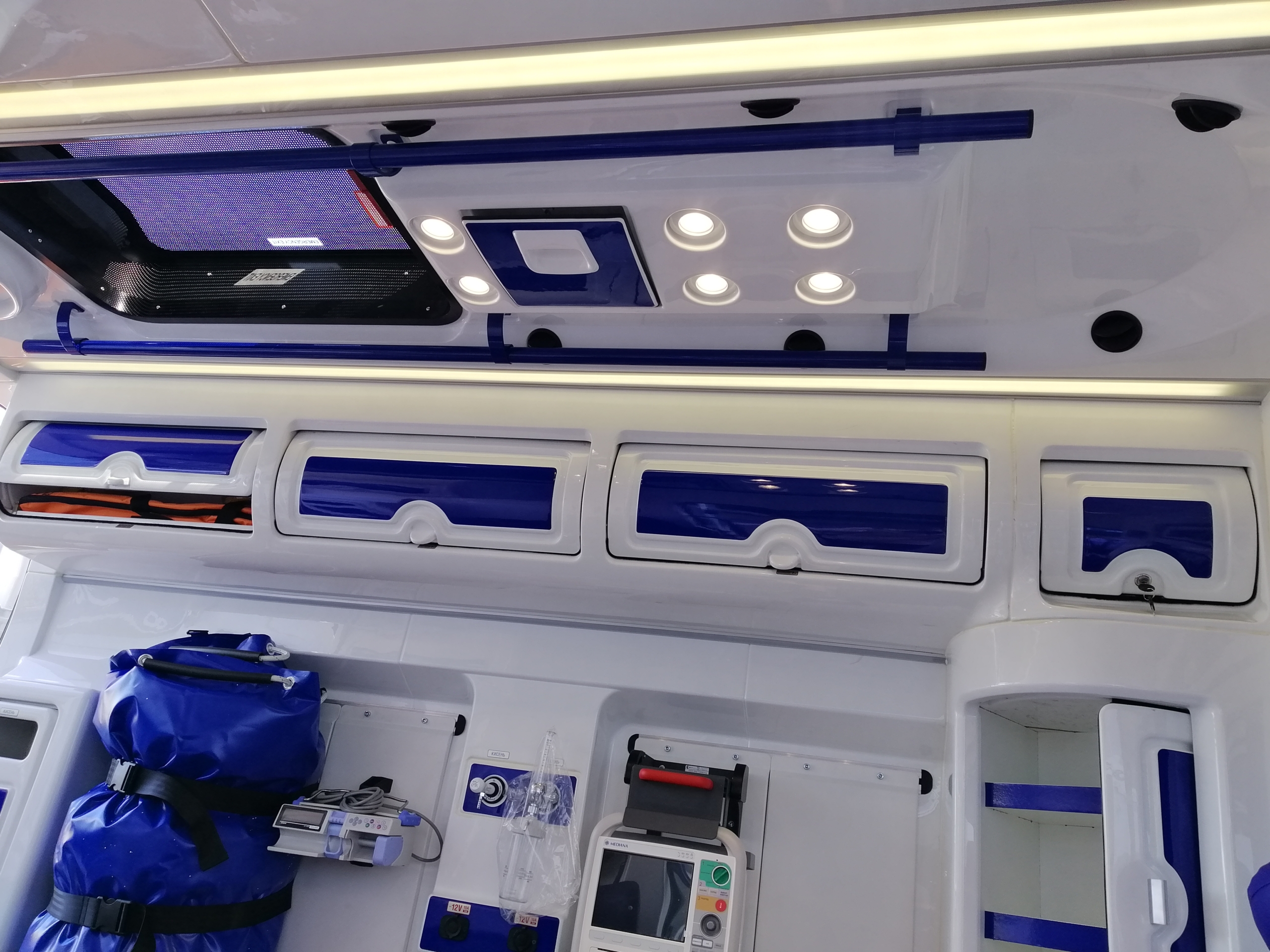 Відсік має оптимальну ергономіку і в ньому комфортно стояти навіть людям високого зросту. Панелі медичного відсіку виготовлено зі спеціального нетоксичного медичного пластику, який легко миється, дверцята шухлядок відкриваються за принципом слайдера та фіксуються у будь-якому положенні, підсвічуються усі зони медичного відсіку, а управління усіма системами зосереджено в одній точці. Також варто зазначити, що «швидка» від «ВіДі Юнікомерс» оснащується найсучаснішим медичним обладнанням провідних світових виробників, серед яких такі бренди як Spencer, Mediana, Gamma, Cardioline та інші.