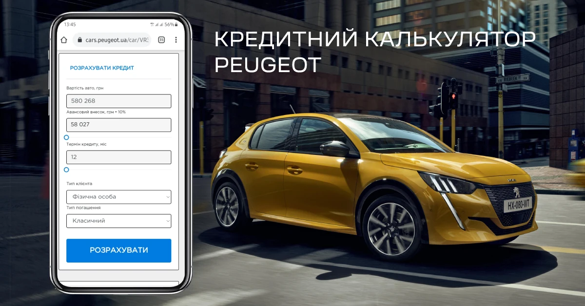 Всю необхідну інформацію по кредиту, а також розрахунок щомісячного платежу вам надасть фінансовий консультант салону. Подача документів і заповнення заявки теж відбувається безпосередньо в салоні. А також, бренди PEUGEOT, CITROЁN, OPEL та DS Automobiles пропонують зручний онлайн калькулятор кредитування на офіційному сайті Бренда в Україні. Це допоможе кожному зацікавленому клієнту заздалегідь прорахувати підходящий варіант кредиту для себе, навіть не виходячи з дому та без звернення до дилера Бренду. І впевнені, що отримані дані з розрахунку кредиту приємно здивують.