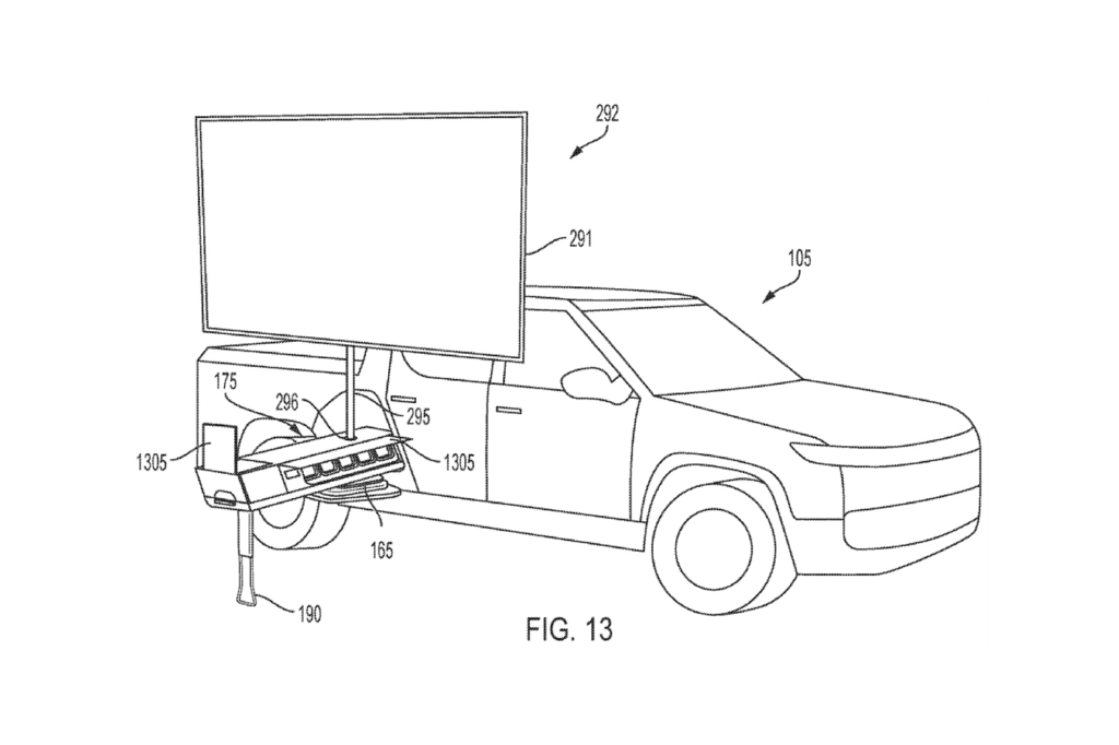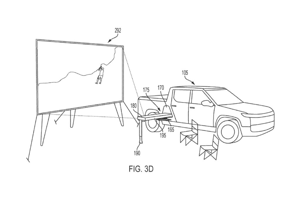 Компанія Rivian подала заявку до патентного відомства США на реєстрацію нового аксесуару для електричного пікапа R1T. Йдеться про портативний кінотеатр з висувним проєктором та дисплеєм, який встановлюється у трансмісійному тунелі. Раніше власникам Rivian R1T почали пропонувати висувну похідну кухню, заховану у тунелі коробки передач між кабіною та вантажною платформою.