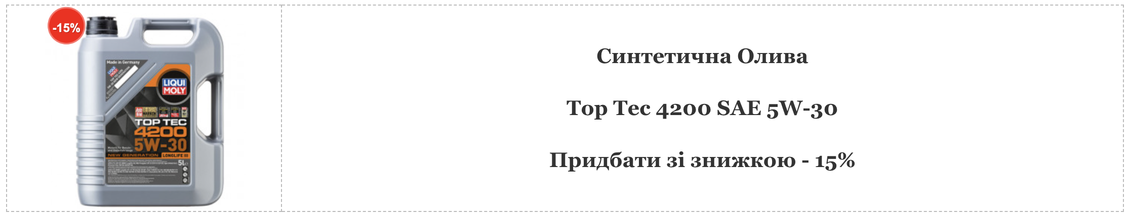 Моторна олива Liqui Мoly Top Tec 4200 5W-30 створена на основі добірних базових олив з додаванням найновітнішого пакету присадок – що забезпечує найвищий рівень захисту всіх компонентів двигуна від зносу та відкладень. Також зменшуються витрати пального та оливи, збільшується термін служби компонентів систем очищення вихлопу (DPF, SCR, TWC). Ідеально підходить для бензинових та дизельних автомобілів не лише німецьких виробників, а ще до марок Skoda, SEAT, Cupra, заводи яких входять до складу концерну Volkswagen AG.