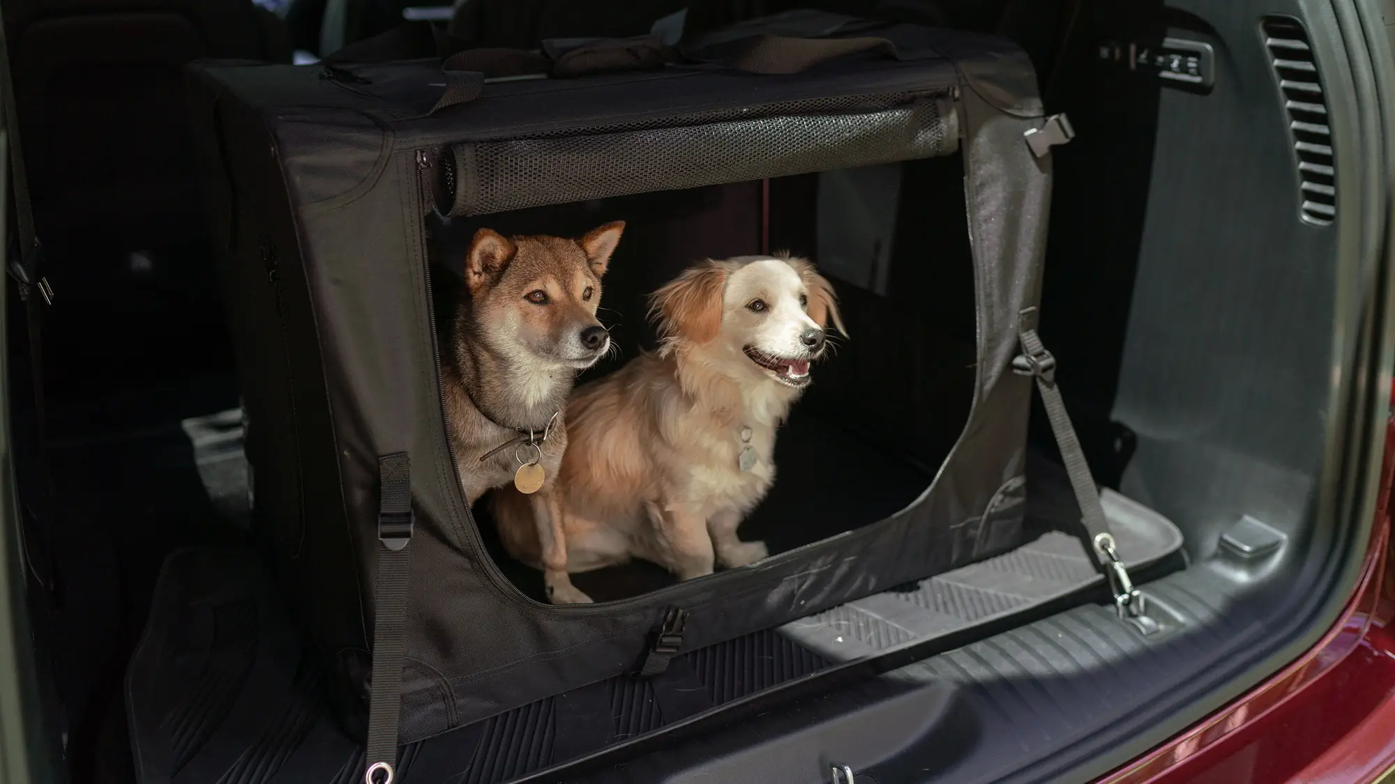 У салоні собаки можуть їздити у відповідній за розміром клітці або на руках у пасажира. Також дозволяється зафіксувати собаку ременями безпеки, але не за шию.
