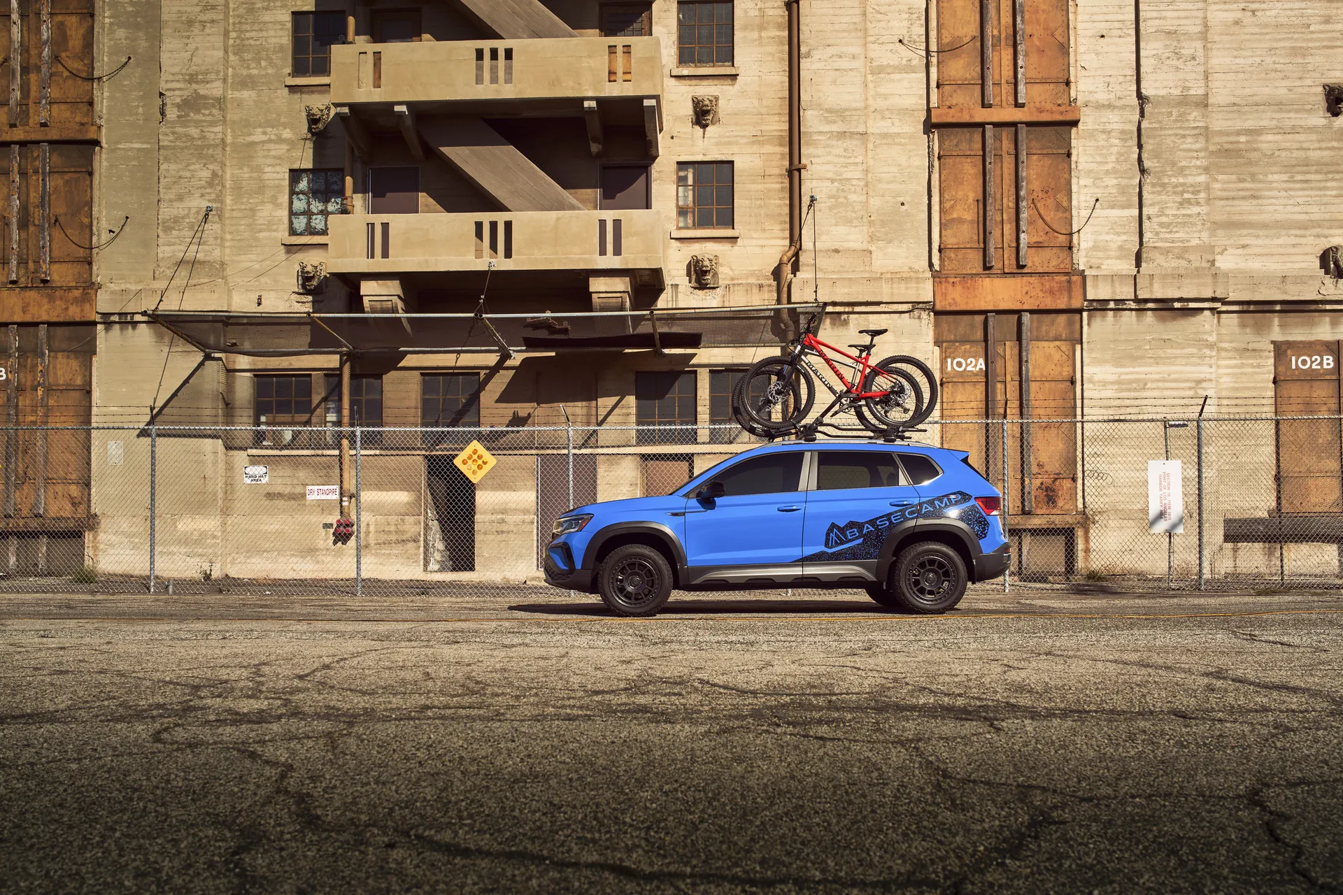 Що стосується концепції VW Taos SEL 4Motion, вона їздить на 17-дюймових колесах, як і модель на основі Atlas. Він отримав збільшений дорожній просвіт та підвіску із пружинами H&R. На даху концепту є багажник із кріпленнями для велосипедів Marin, а кузов прикрашений лівреєю Basecamp.
