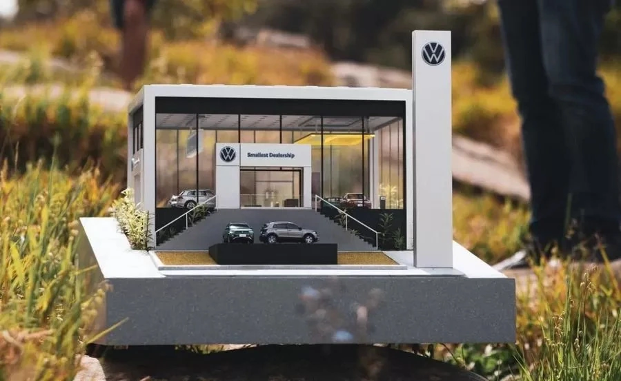 Австралійський дилер Volkswagen знайшов спосіб збільшити продаж в умовах сучасних обмежень. Із цією метою побудували макет типового дилерського центру марки висотою 28 см, всередині якого розташувався весь модельний ряд Volkswagen. Плюс такого центру в мобільності: його можна переносити і встановлювати в будь-якому місці.