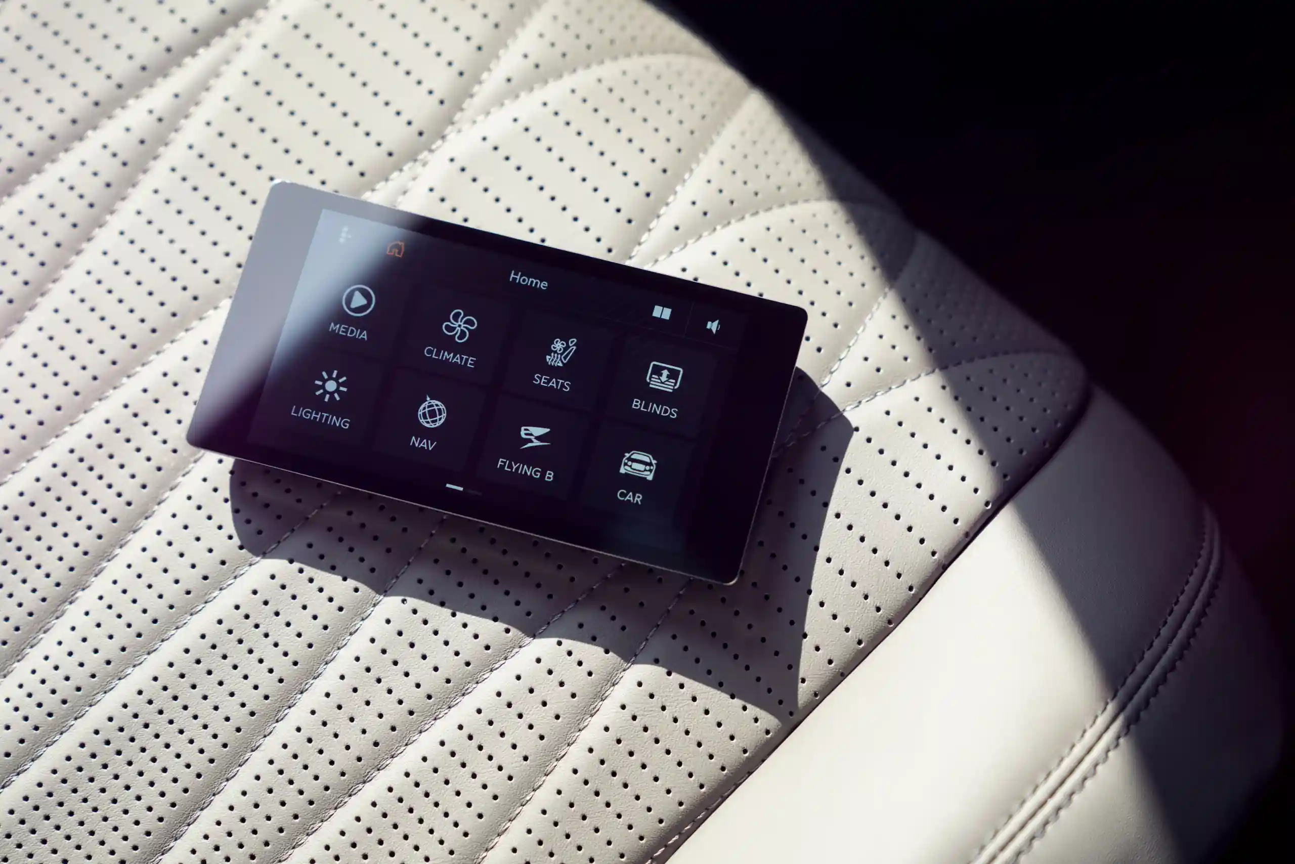 Пасажирська задня частина салону оснащена абсолютно новим пультом дистанційного керування з сенсорним екраном. За допомогою пульта ви матимете доступ до налаштувань управління всіма жалюзі, функцією масажу на задньому сидінні і заднім клімат-контролем, а також керуванням встановленими конфігураціями, наприклад, освітленням салону (специфікація Mood Lighting).