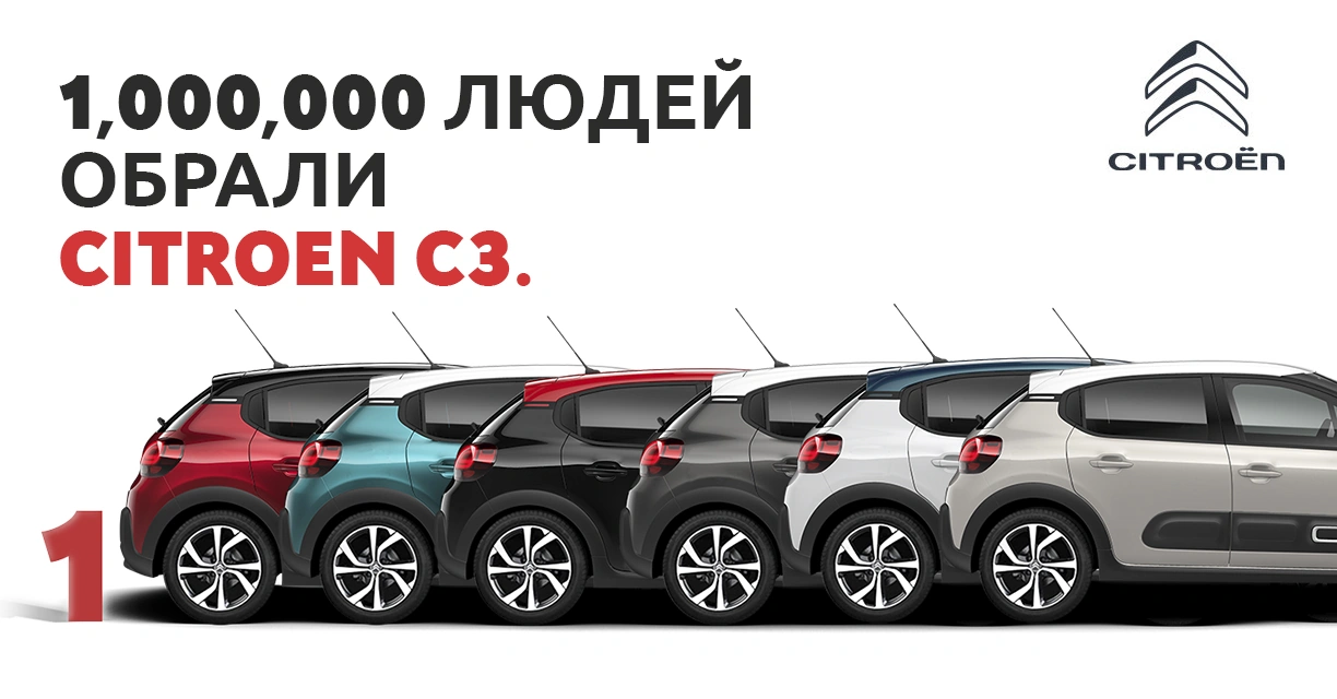 Хетчбек CITROЁN C3 третього покоління тільки що досяг знакової позначки: продано мільйон автомобілів! Запущений в листопаді 2016 року і вироблений в Словаччині (м Трнава), автомобіль CITROЁN C3 свого часу дав новий імпульс Бренду: він відкрив новий дизайн-стиль, який тепер можна побачити на всіх нових моделях CITROЁN, а також підтвердив обраний вектор розвитку в бік поліпшення комфорту, що є «візитною карткою» для Бренда CITROЁN в цілому. Як результат, настільки унікальна пропозиція по достоїнству оцінили покупці - модель CITROЁN C3 увійшла в список ТОП-7 найбільш популярних автомобілів Європі за підсумками 2020 року. Навіть більше: сьогодні автомобіль входить в ТОП-3 свого сегменту на основних автомобільних європейських ринках, таких як Франція, Іспанія, Італія, Бельгія, Португалія, Данія, Словаччина, Болгарія.