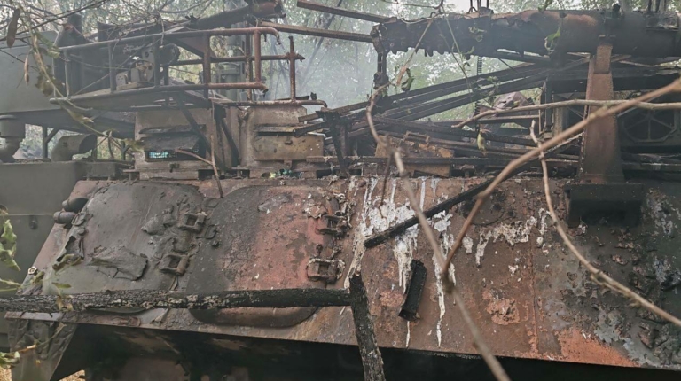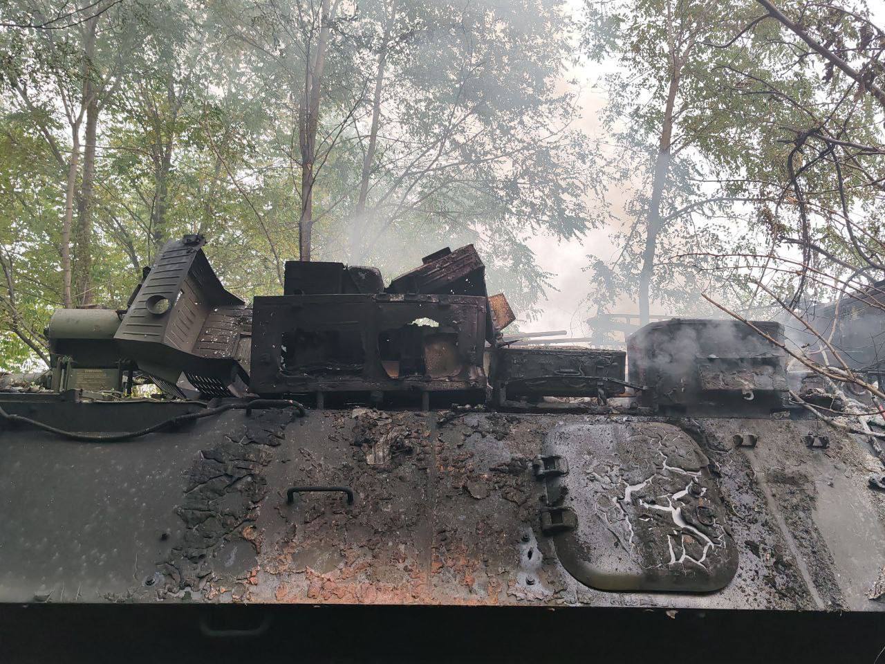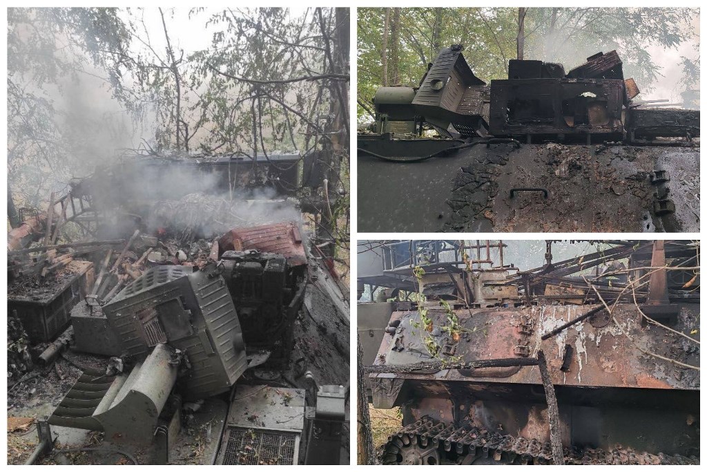Судячи з опублікованих фотографій, дрон потрапив точно в ціль. Бронемашина повністю вигоріла і тепер більше нагадує купу металу, ніж бойову одиницю. Можна впевнено сказати, що відновленню вона не підлягає.